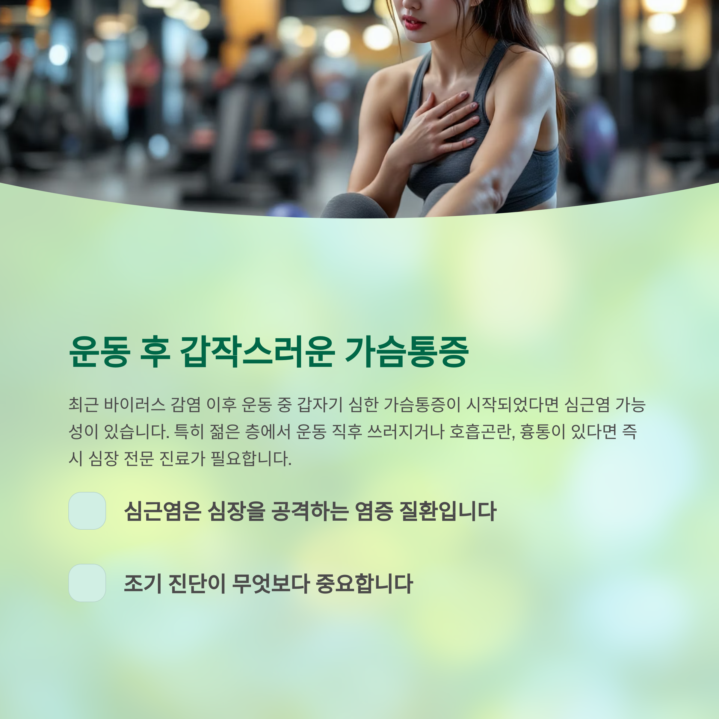 최근 바이러스 감염 이후 운동 중 갑자기 심한 가슴통증이