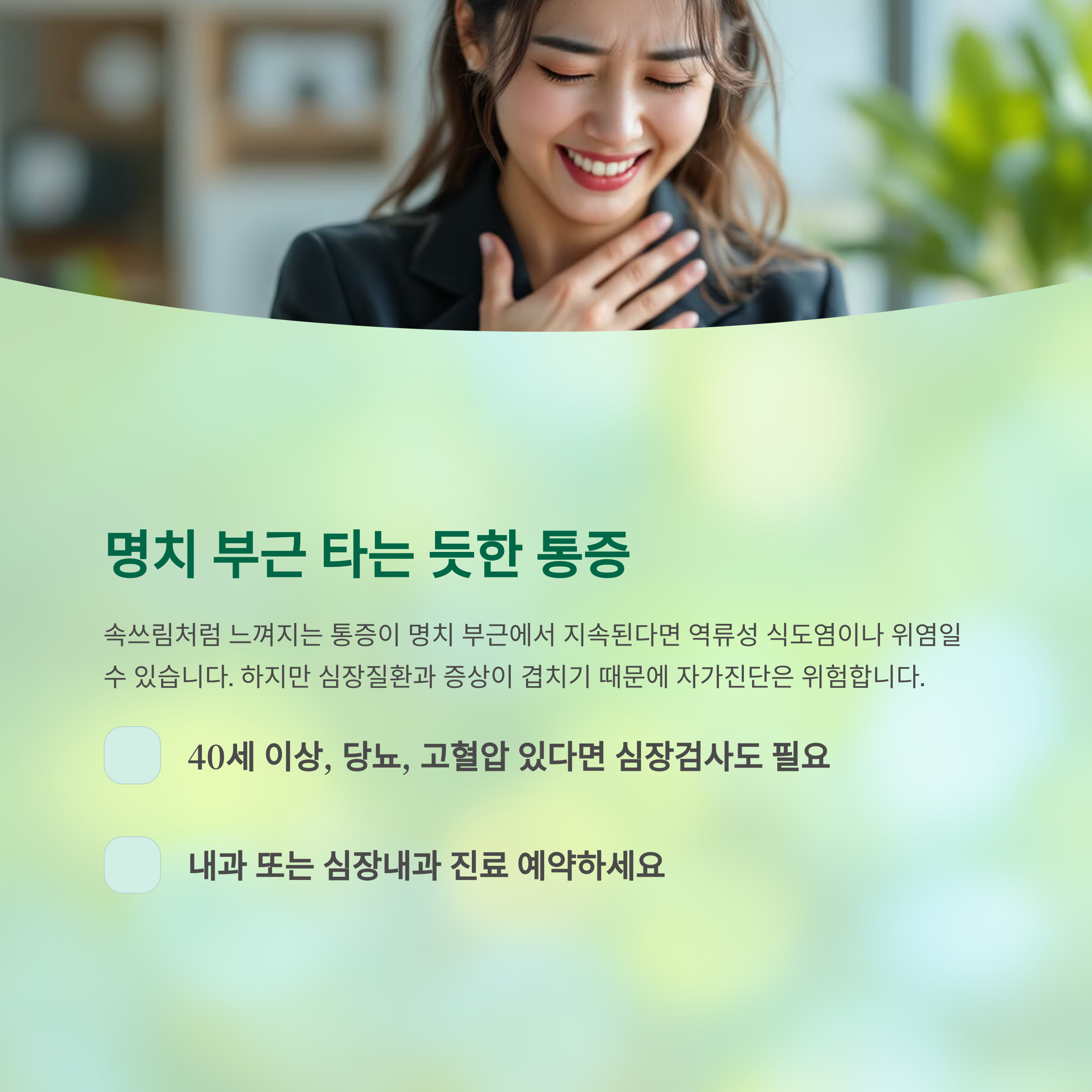 속쓰림처럼 느껴지는 통증이 명치 부근에서 지속된다면 역류성 식도염,