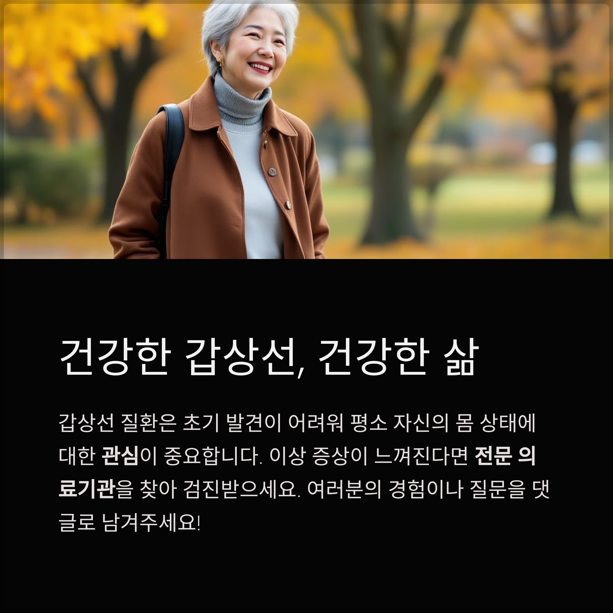 갑상선 질환은 초기에는 발견하기 어려운 경우가 많아 평소 자신의 몸 상태에 대한 관심이 매우 중요합니다. 특히 여성들은 호르몬 변화와 밀접하게 연관된 만큼 조금이라도 이상 증상이 느껴진다면 전문 의료기관을 찾아 검진받는 것이 좋습니다. 꾸준한 건강관리와 올바른 생활습관을 통해 갑상선 질환을 예방하고 건강한 삶을 유지하시길 바랍니다.