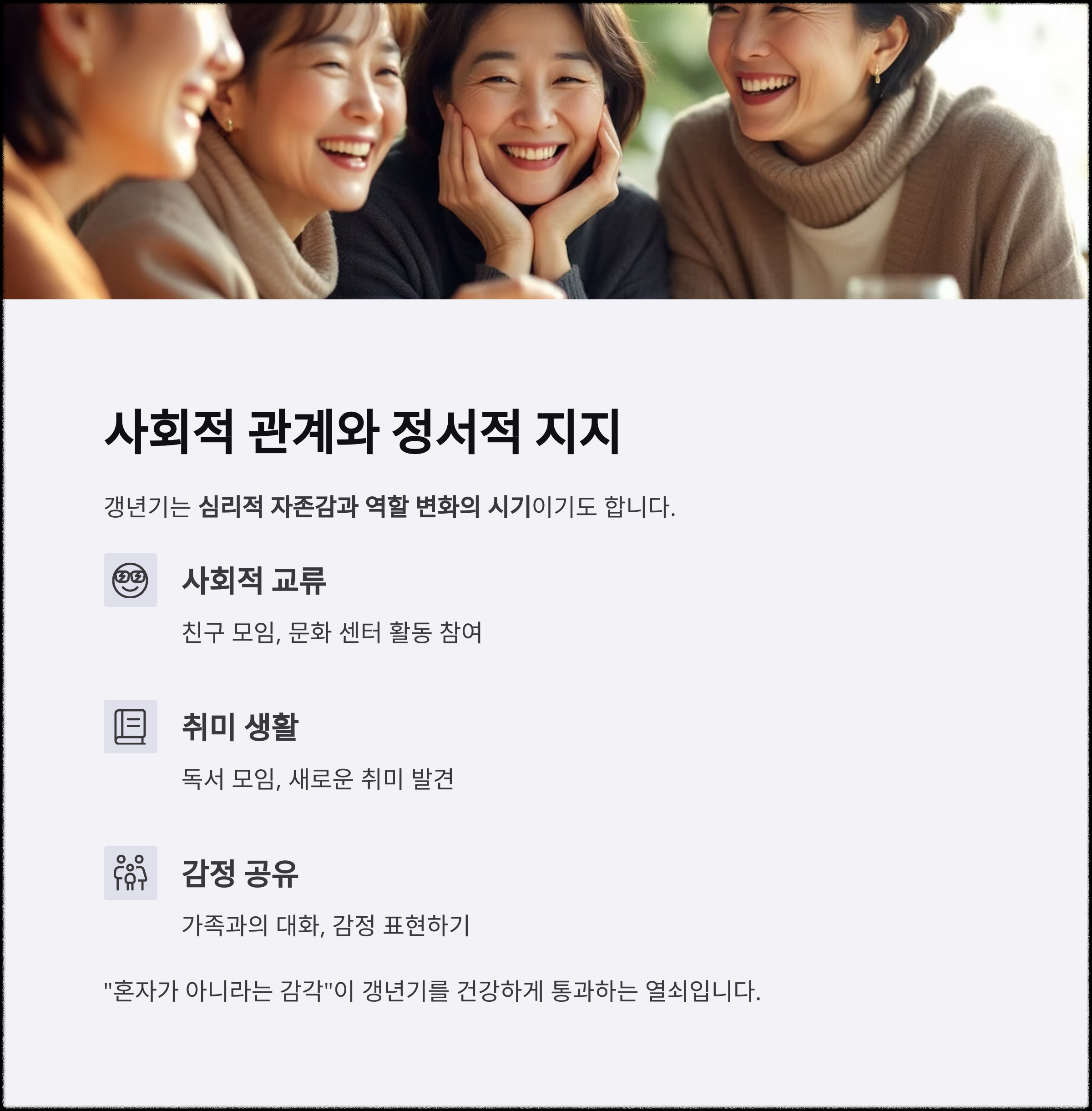 "혼자가 아니라는 감각"은 갱년기를 훨씬 더 건강하게 통과하는 열쇠입니다.