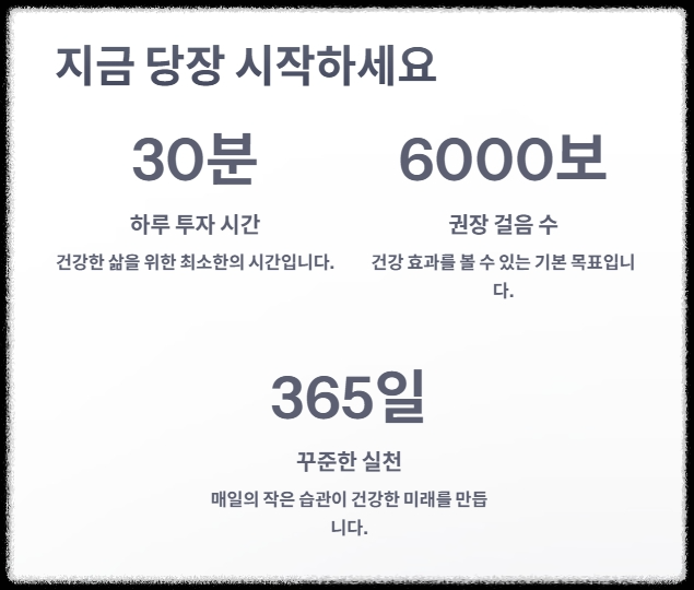 “하루 30분 걷기는 가장 쉬운 건강 보험입니다.”