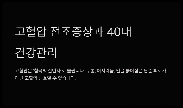 안녕하세요 여러분! 혹시 최근 들어 머리가 무겁거나 어지러움을 느끼신 적 있으신가요? 또는 사소한 일에도 얼굴이 붉어지고 피곤함이 쉽게 몰려오진 않으신가요? 이런 증상은 단순한 피로나 스트레스가 아니라 고혈압의 전조증상일 수 있습니다. 특히 40대를 지나며 혈관과 심장 건강에 적신호가 켜지는 만큼, 지금 이 순간이 건강한 습관을 시작할 중요한 시기입니다.