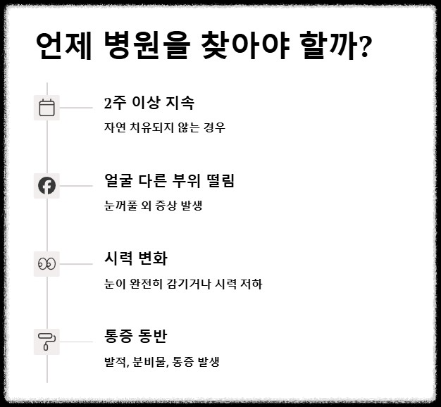 대부분의 눈 밑 떨림은 자연스럽게 사라지지만, 다음과 같은 경우에는 의사와 상담이 필요합니다: