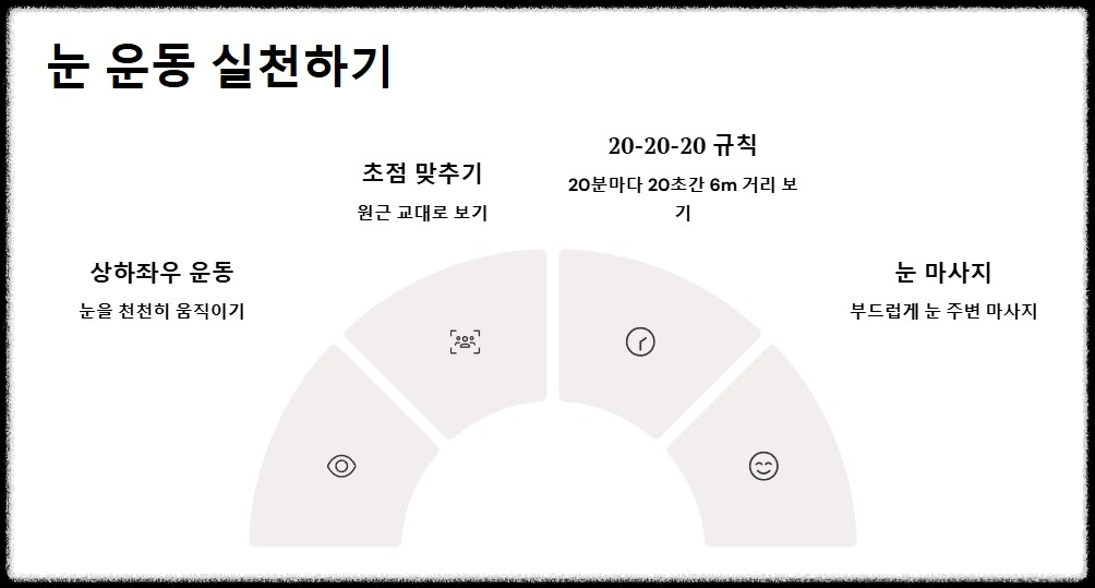 눈 근육을 강화하는 간단한 운동은 눈 떨림 예방에 효과적입니다. 상하좌우로 눈을 천천히 움직이거나, 먼 곳과 가까운 곳을 번갈아 보는 초점 맞추기 운동을 해보세요.