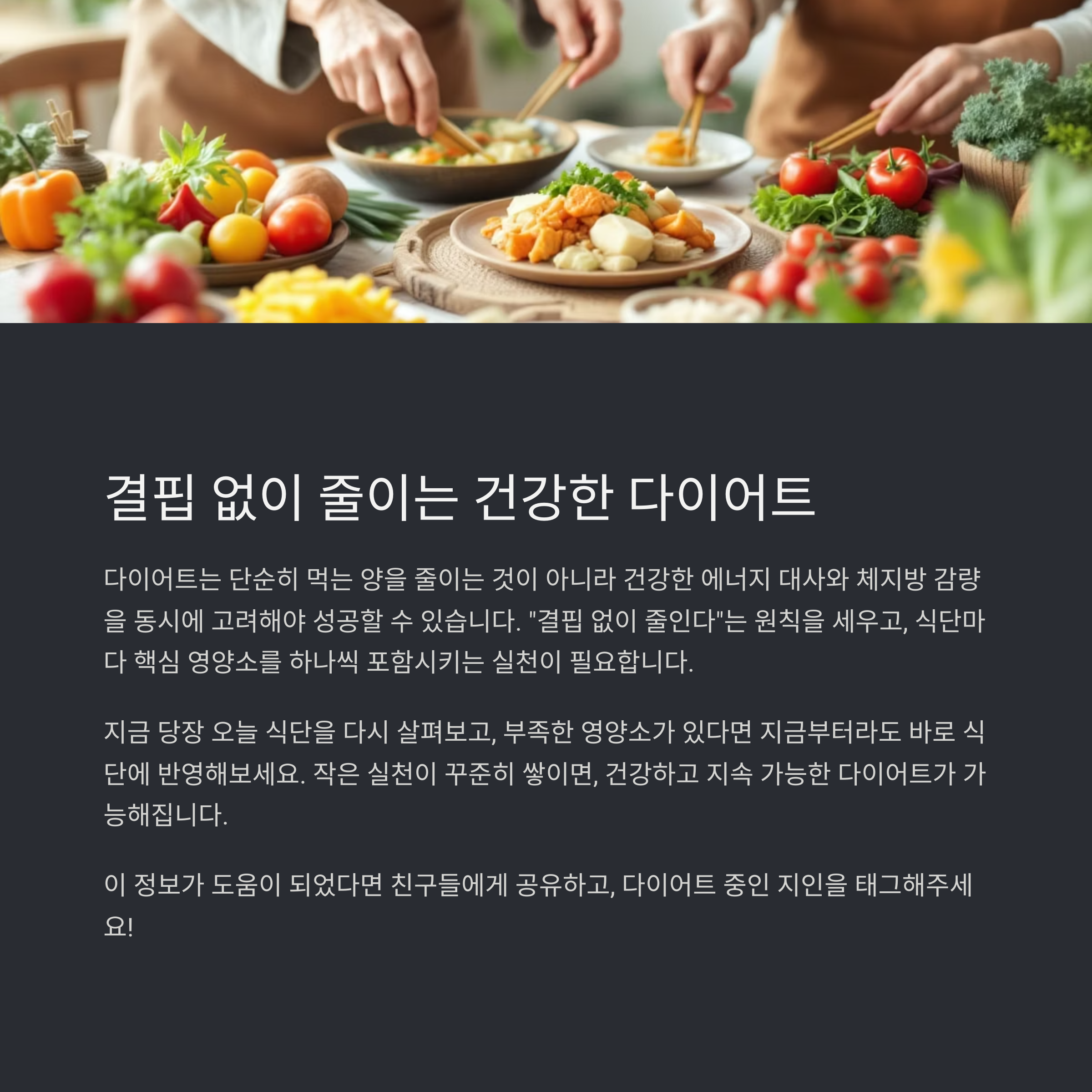 작은 실천이 꾸준히 쌓이면, 건강하고 지속 가능한 다이어트가 가능해집니다.
