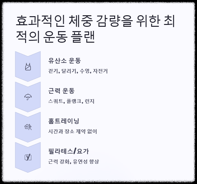 건강한 식단과 함께 운동은 다이어트 성공의 핵심 요소입니다. 최근에는 홈트레이닝, 필라테스, 요가 등 다양한 운동 트렌드가 유행하고 있지만, 자신에게 맞는 운동을 선택하고 꾸준히 실천하는 것이 중요합니다.
