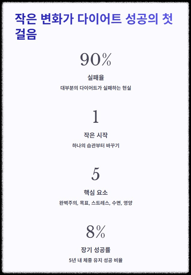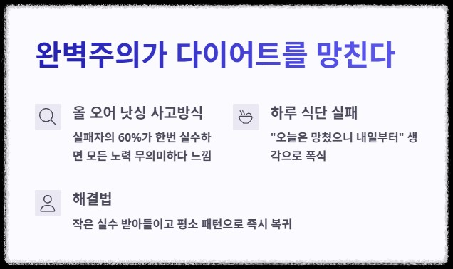 2025년 심리학 트렌드 보고서에 따르면, 다이어트 실패자의 60% 이상은 "한 번 실수하면 모든 노력이 무의미하다"고 느끼는 경향을 보였습니다. 이른바 '올 오어 낫싱' 사고방식입니다.