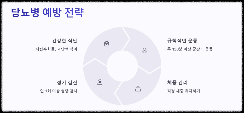 특히 당뇨병은 유전적 요인보다 생활 습관 요인이 더 큰 영향을 주는 질환이기 때문에, 조기 발견을 통해 관리가 가능합니다.