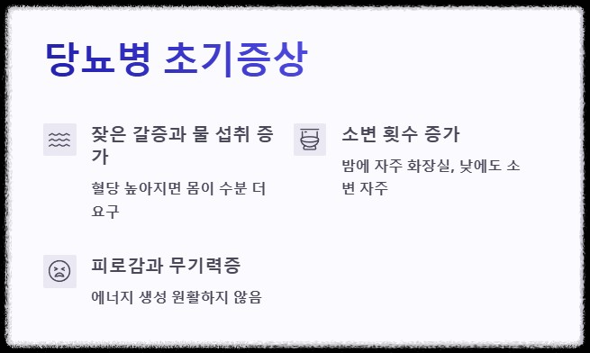 다음은 많은 당뇨병 환자들이 초기에 경험한 대표적인 증상들입니다.