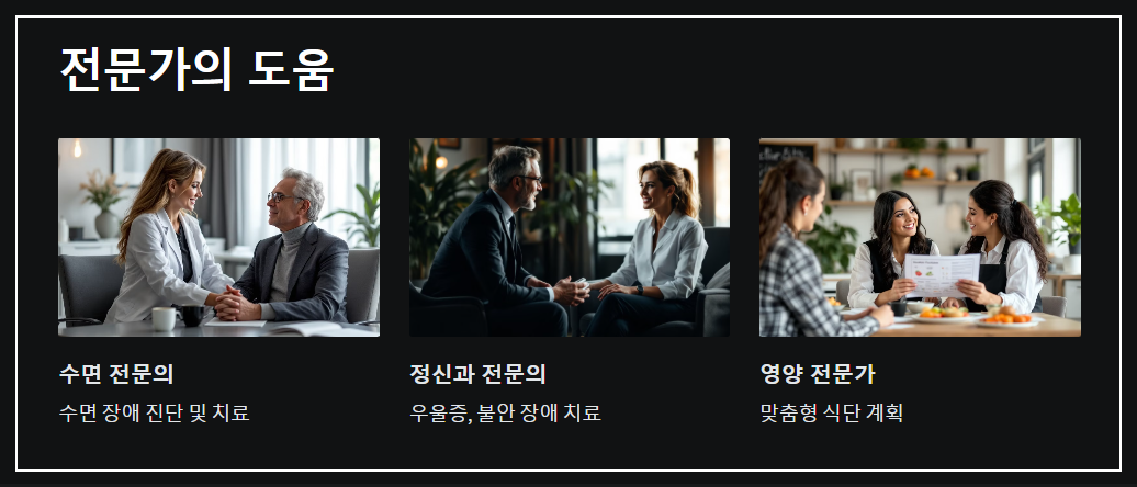 수면 전문의: 수면 장애가 의심된다면 수면 전문의에게 진료를 받아 정확한 진단과 치료를 받습니다.