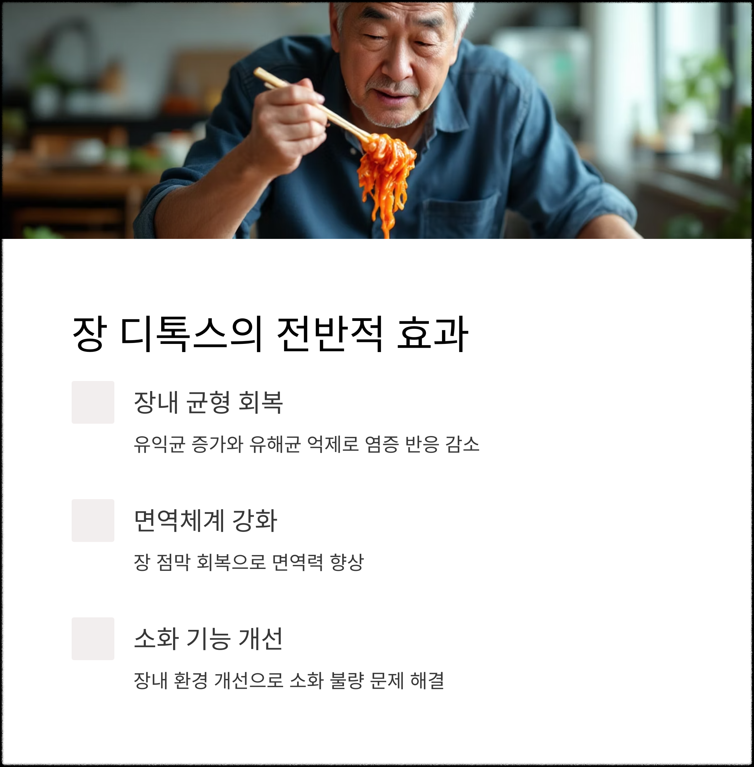 | 장내 독소 제거와 유익균 활성화를 위한 건강법 | 변비로 고생하는 분들에게 필수적인 장 관리 | 면역력과 직결되는 장내 환경 개선의 시작 |