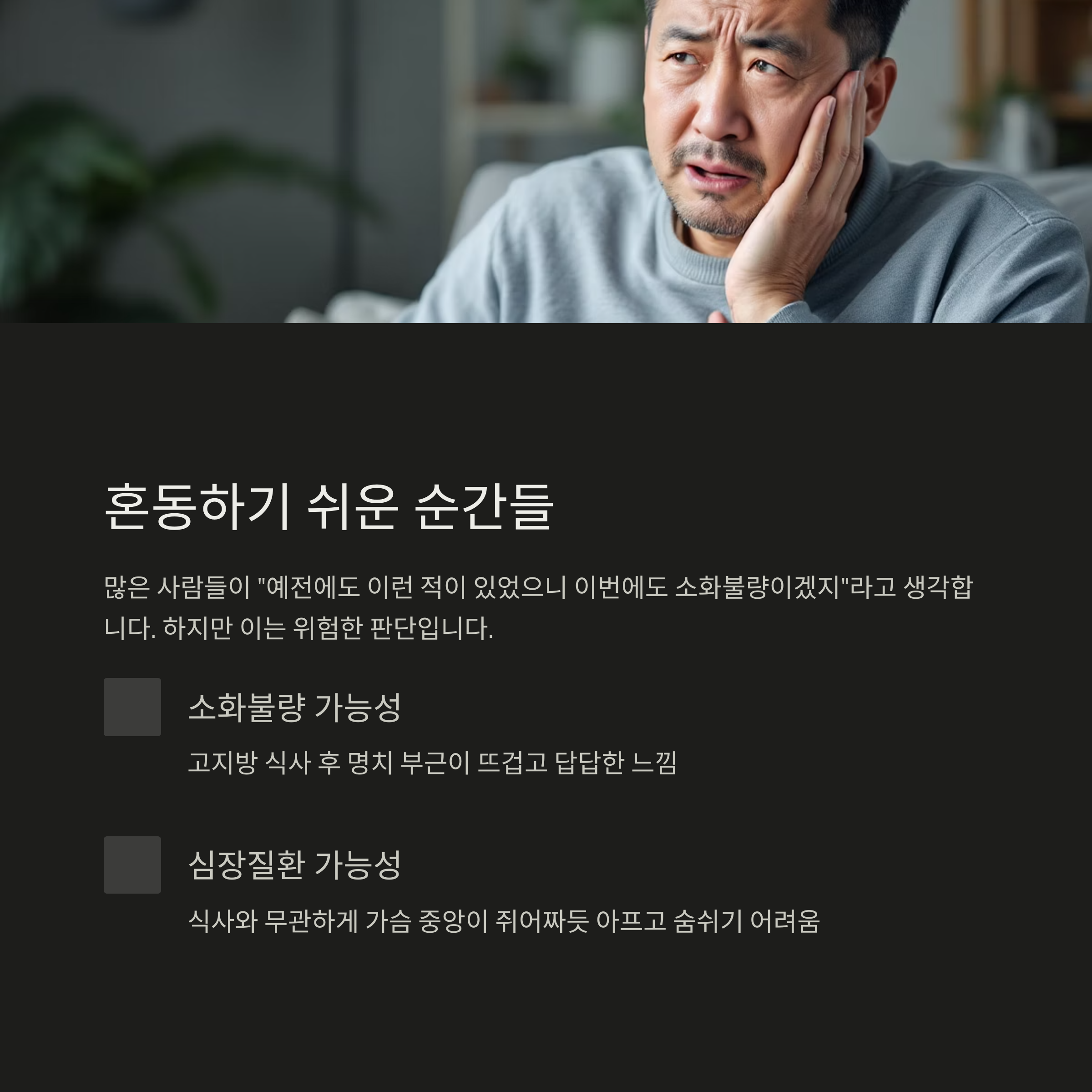 단순한 소화불량일지, 아니면 심각한 심장 질환의 전조인지 고민되셨을