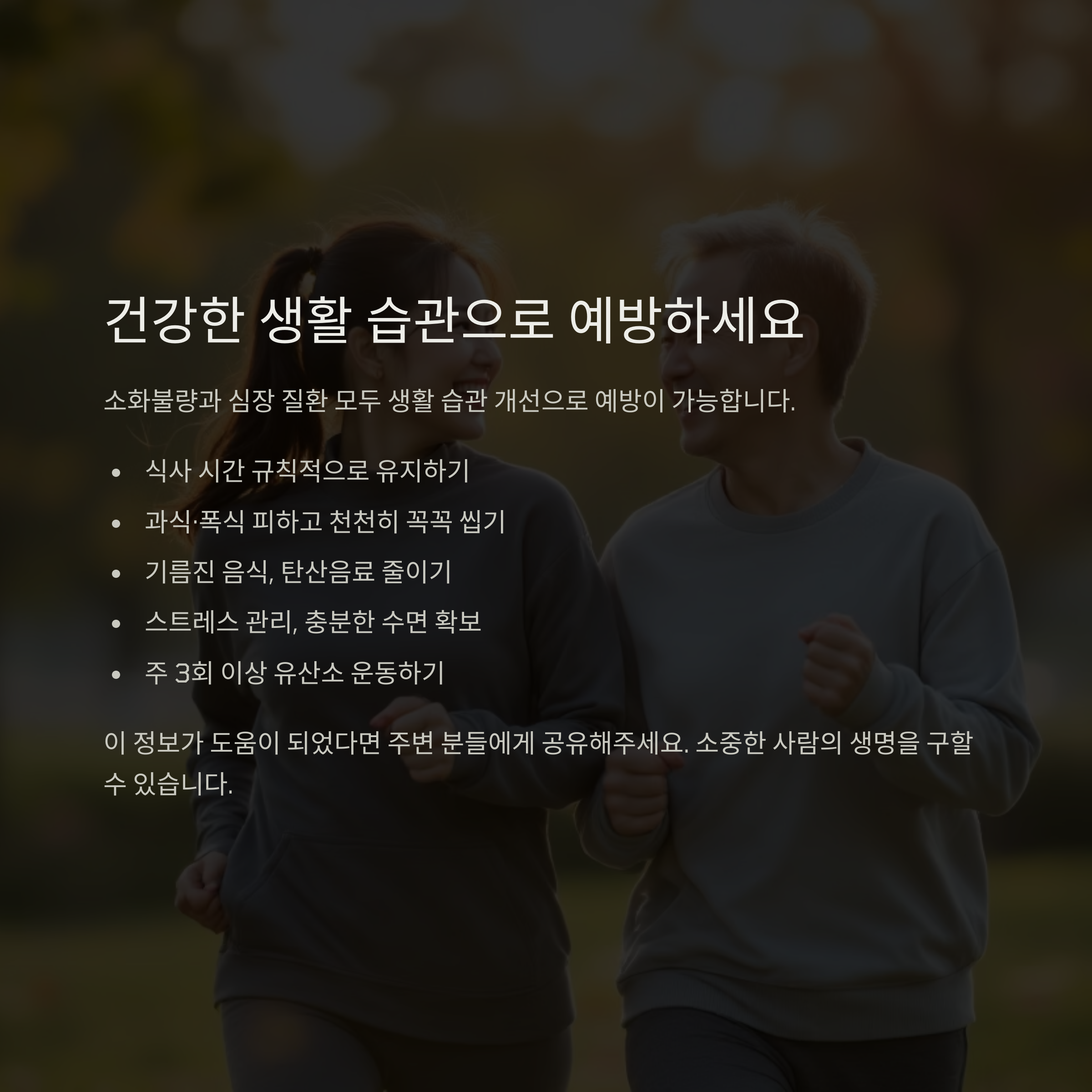 소화불량과 심장 질환 모두 생활 습관 개선으로 예방이 가능합니다.