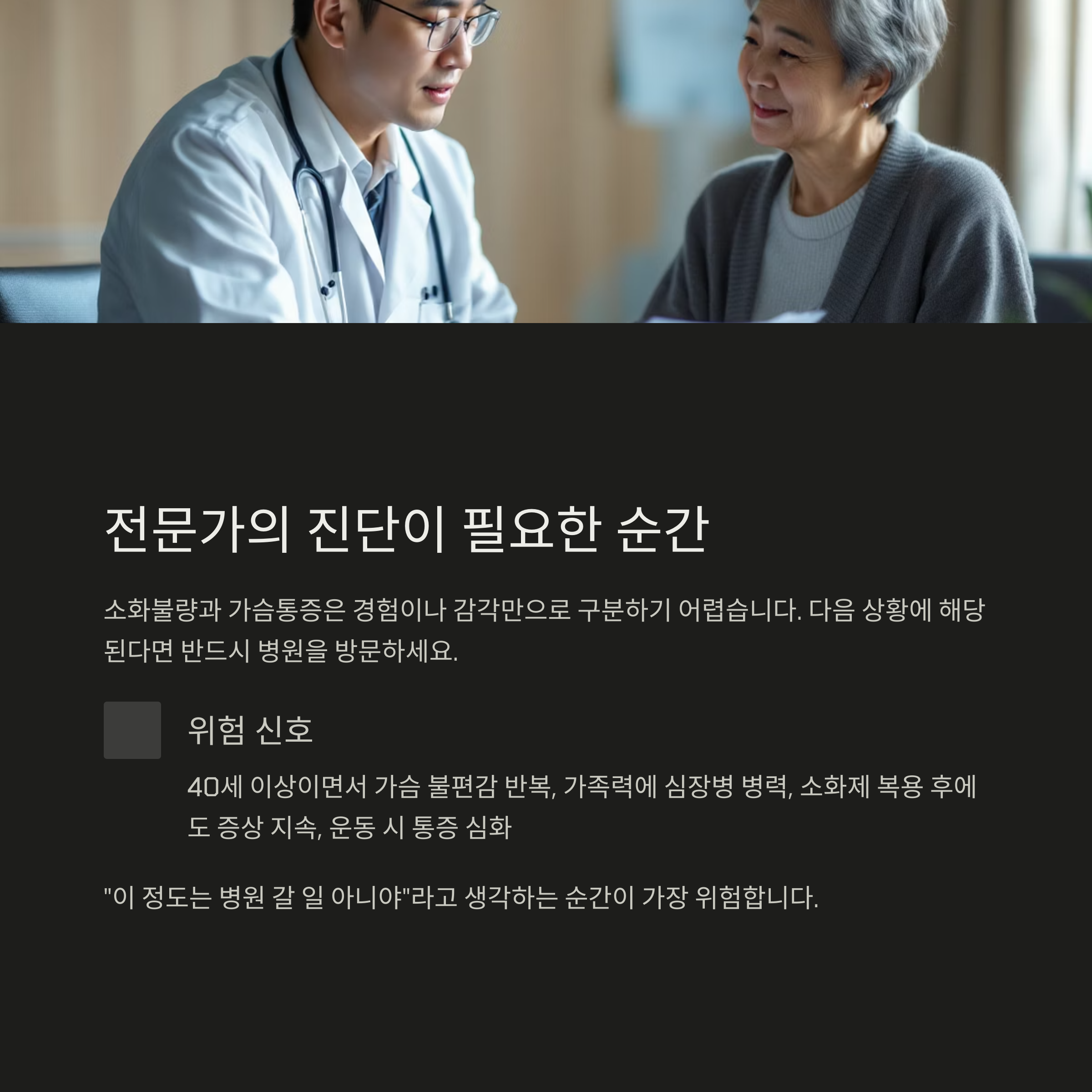 소화불량과 가슴통증의 구분은 경험이나 감각만으로는 어렵습니다.