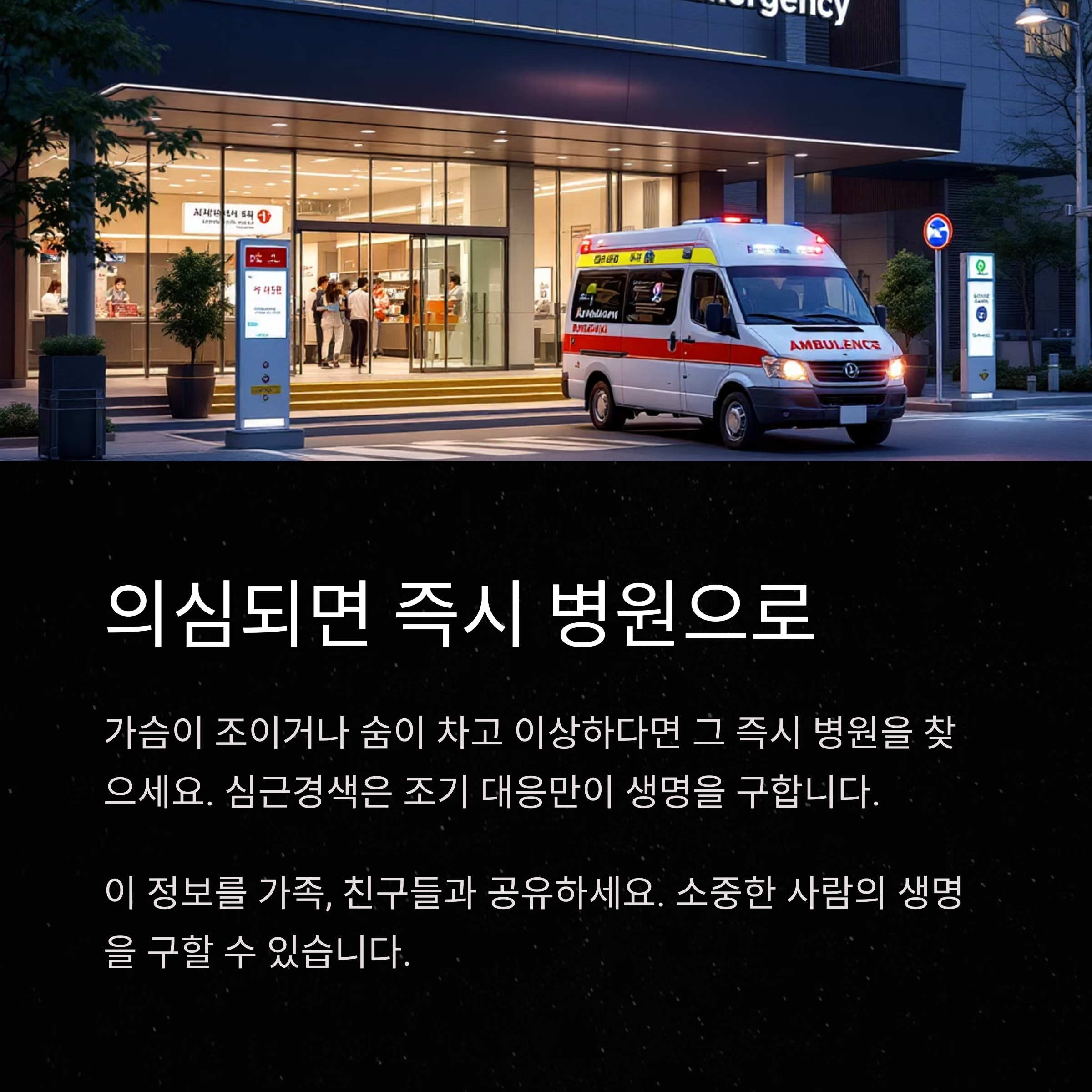 심근경색은 조기 대응만이 생명을 구하는 길입니다.