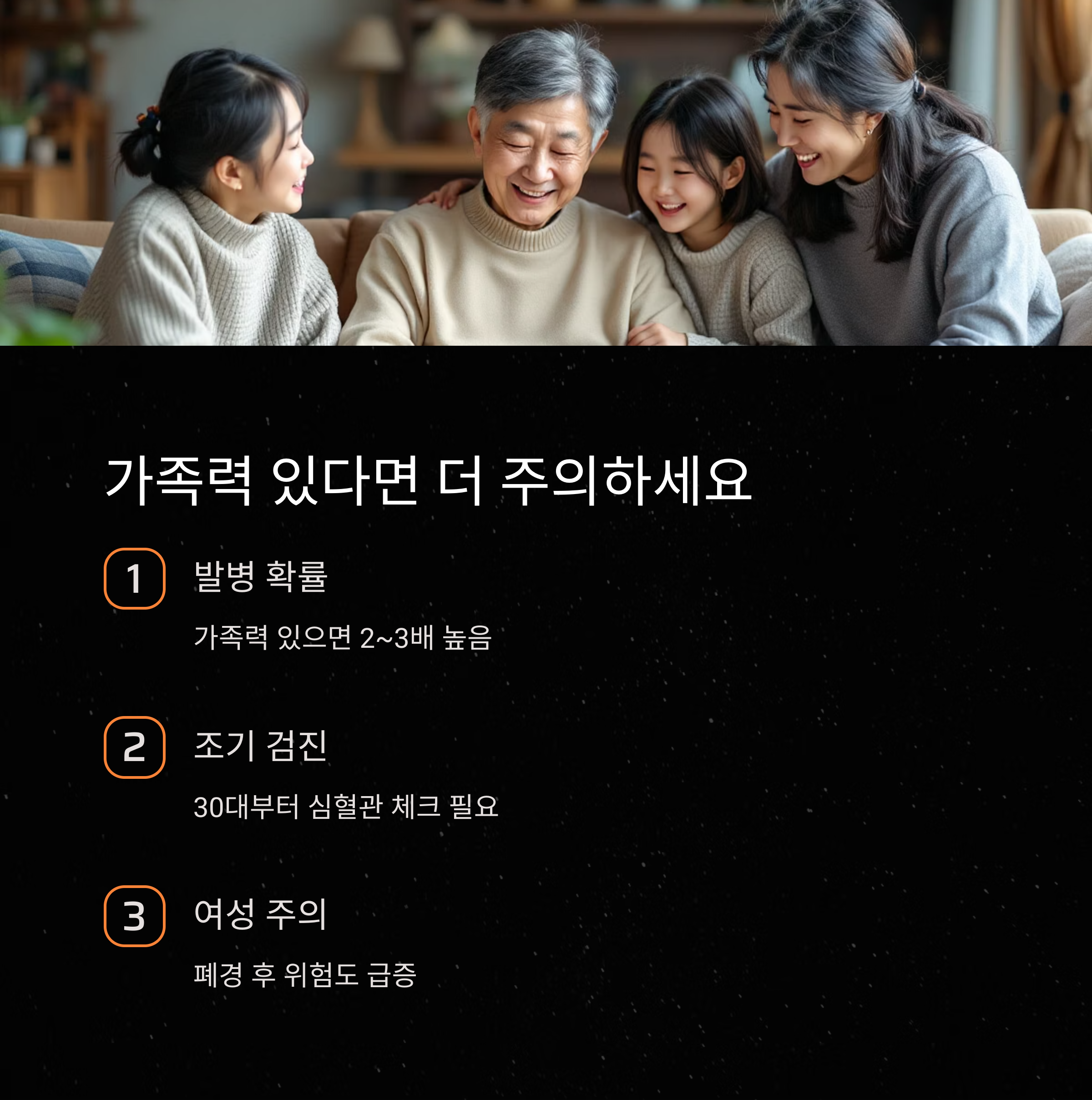가족 중 심근경색이나 협심증 병력이 있다면, 나도 발병할 확률이 2~3배 높습니다.