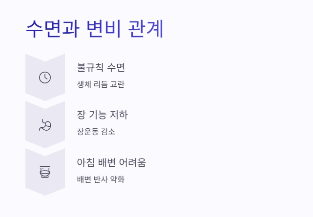 수면 시간이 불규칙하거나 야간 근무자에게서 장내 생체 리듬이 깨지며 아침 배변 기능이 저하되는 경향이 확인되었습니다.