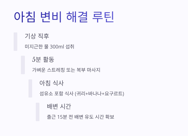 - 섬유소 포함한 아침 식사 (예: 귀리+바나나+요구르트)
