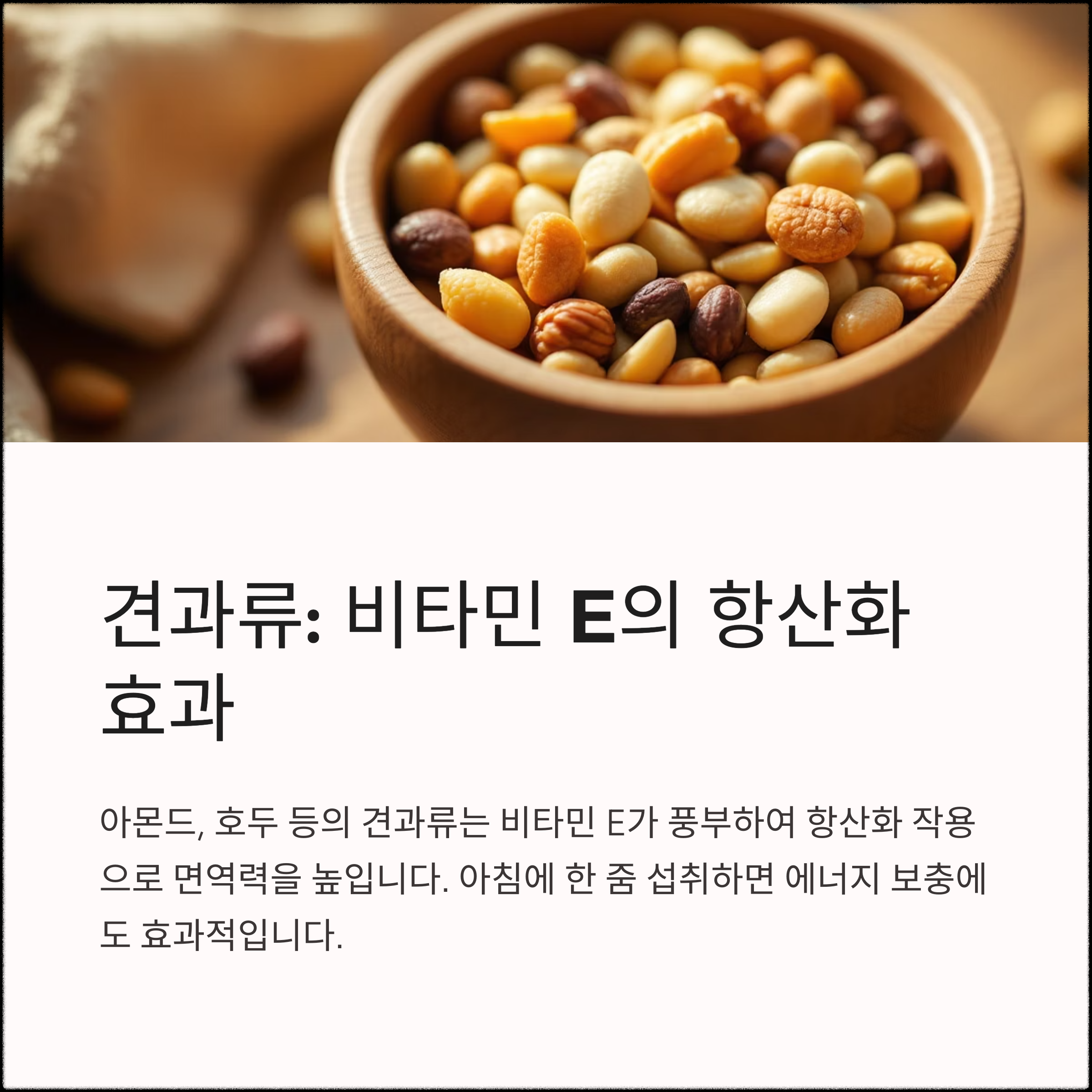 견과류: 비타민 E로 항산화 및 면역력 강화