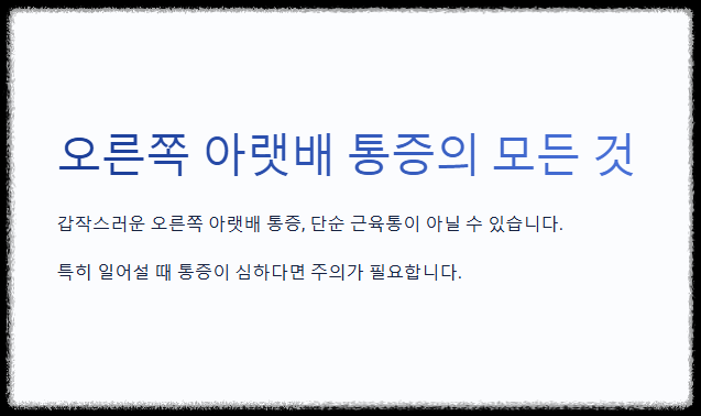 일상생활 중 갑자기 오른쪽 아랫배에 통증을 느끼고, 특히 앉았다가 일어설 때 그 통증이 심해지는 경우가 있다. 단순한 복부 불편감이 아닌 날카로운 통증이라면 반드시 원인을 명확히 파악해야 한다. 이러한 증상은 단순한 근육통부터 장기 이상, 여성의 생식기 문제, 맹장염 등 다양한 원인으로 발생할 수 있다.