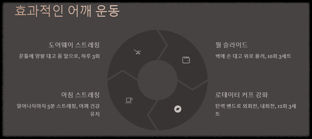 저는 이 운동들을 6개월간 꾸준히 했고, 이전 상태의 95% 이상 회복했습니다. 특히 아침에 일어나자마자 5분 스트레칭은 어깨 건강 유지에 큰 도움이 되었습니다.