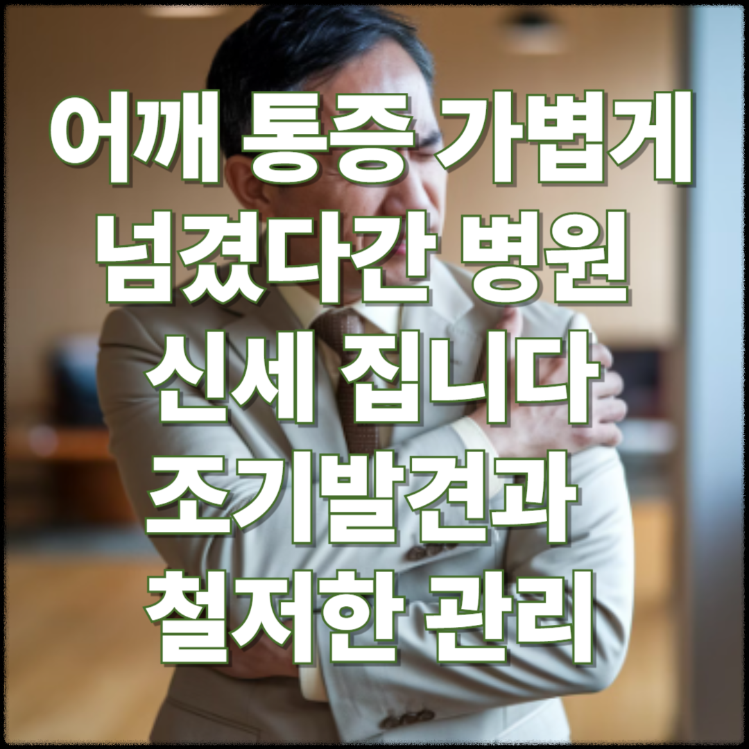 지금 행동하세요: 어깨 통증이 있다면 일정을 조정해서라도 이번 주 내로 정형외과를 방문하세요. 조기 진단은 치료 기간과 비용을 크게 줄여줍니다.