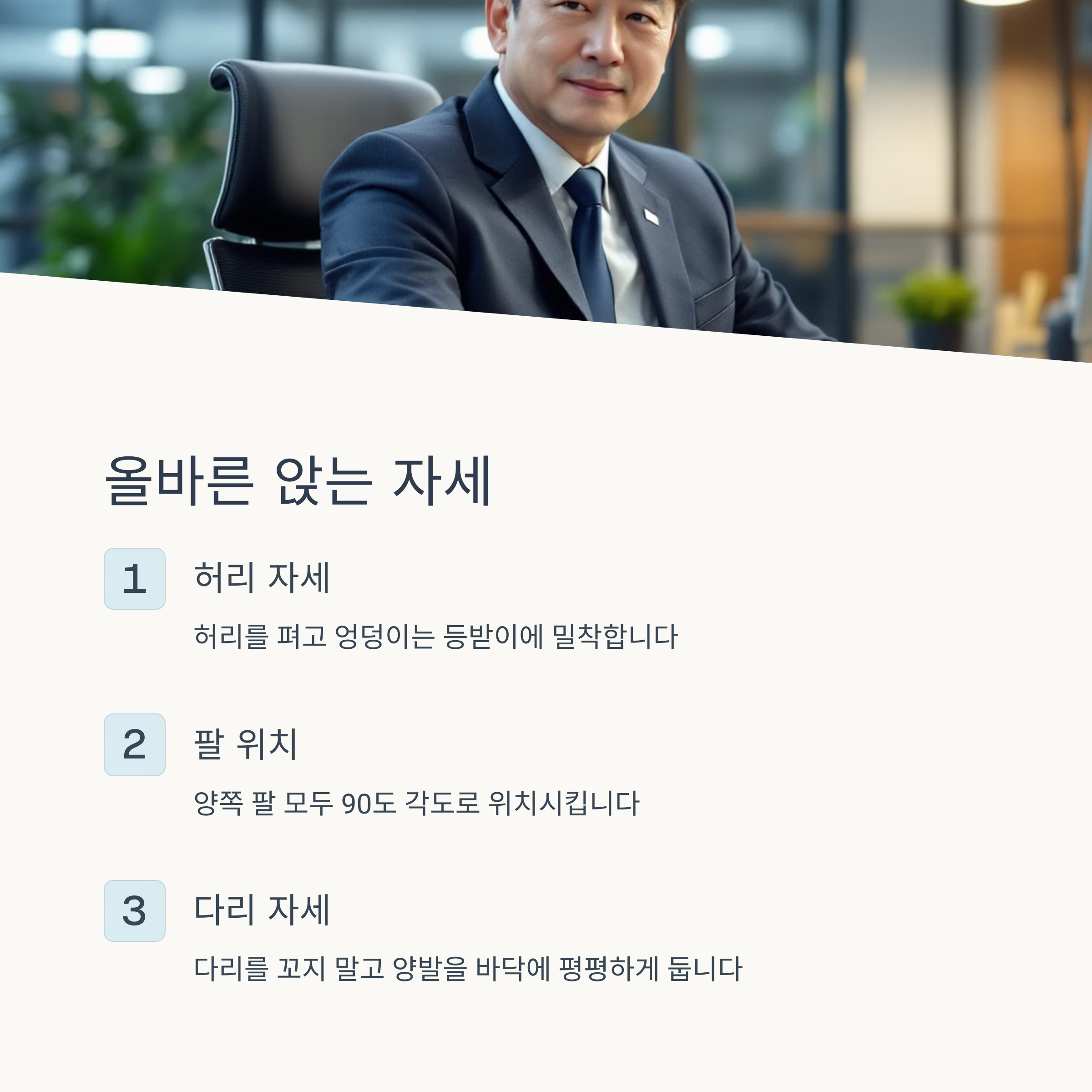올바른 자세로 오래 앉는 법도 중요한 실천 포인트입니다
