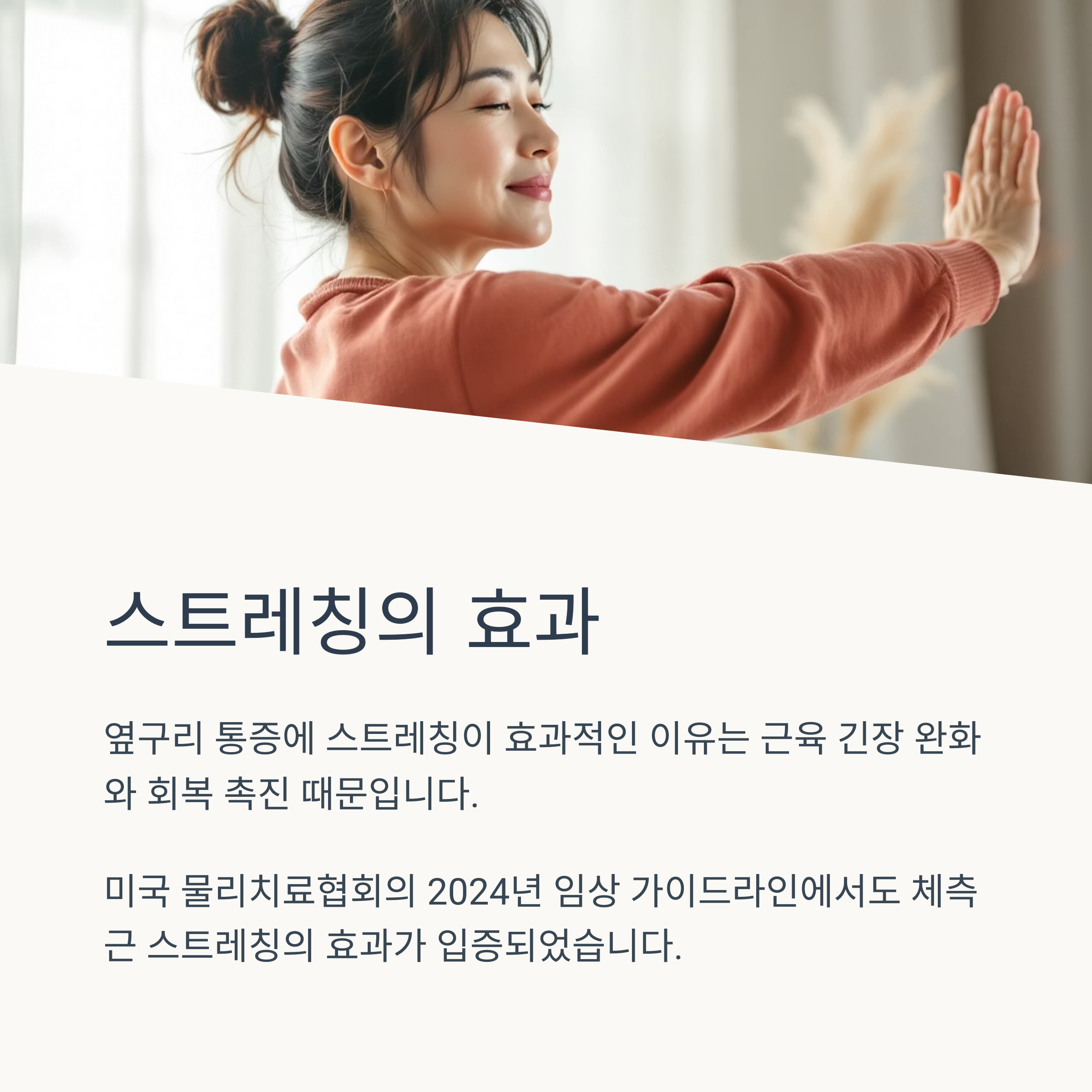 임상 가이드라인에서도 측면 통증 완화를 위한 체측근 스트레칭의 효과가