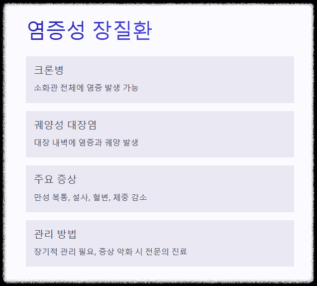 이러한 질환은 장기적인 관리가 필요하며, 증상이 지속되거나 악화되면 전문의의 진료를 받는 것이 좋습니다.