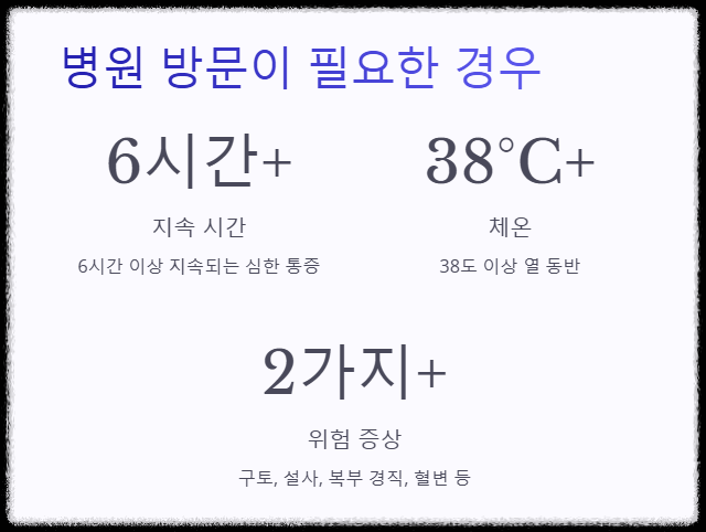 모든 복통이 심각한 건 아니지만, 다음과 같은 증상이 동반된다면 즉시 병원을 찾아야 합니다: