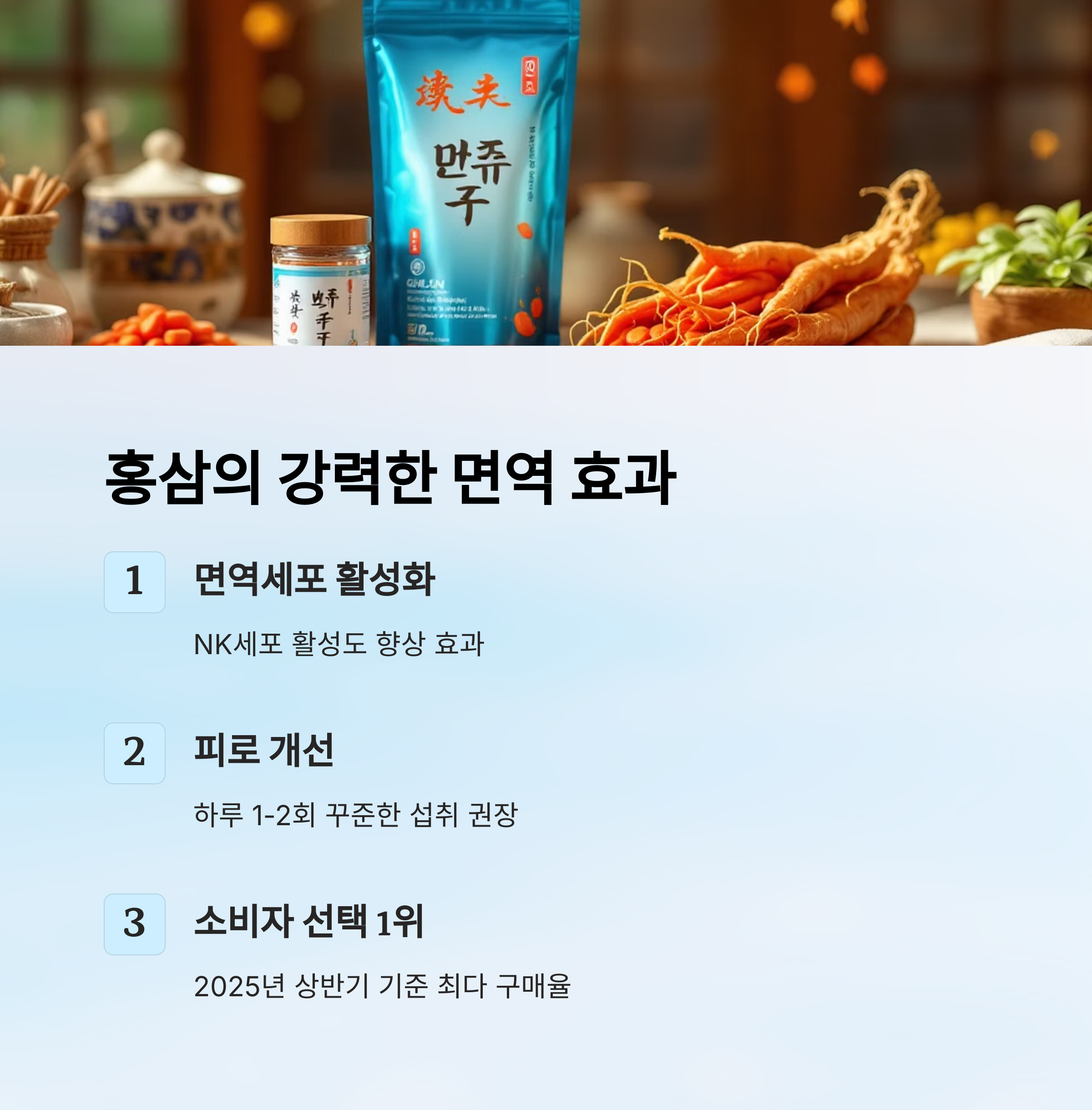 하루 1~2회 꾸준히 섭취하면 NK세포 활성도 향상과 함께