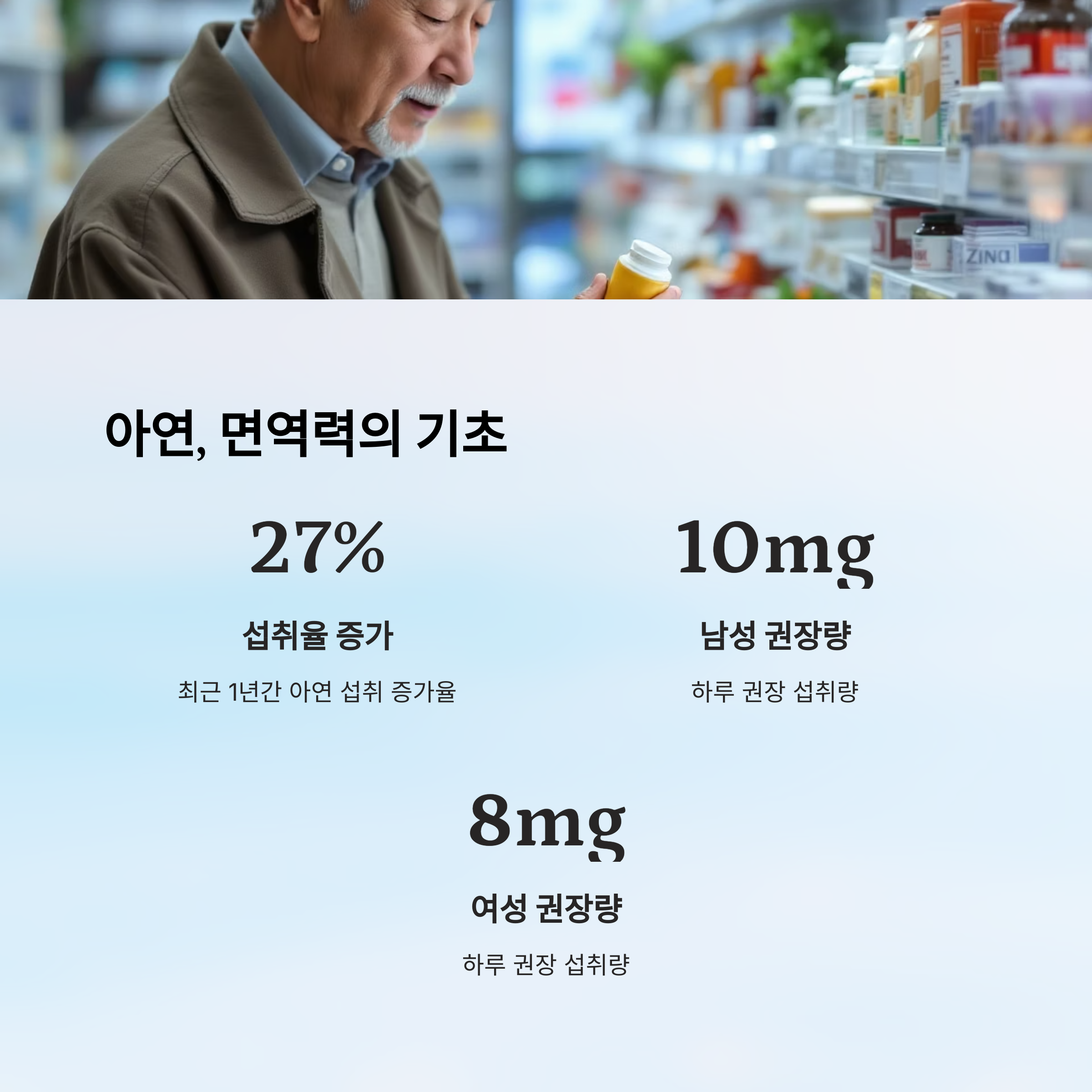 최근 1년간 아연 섭취율이 27% 증가했습니다.