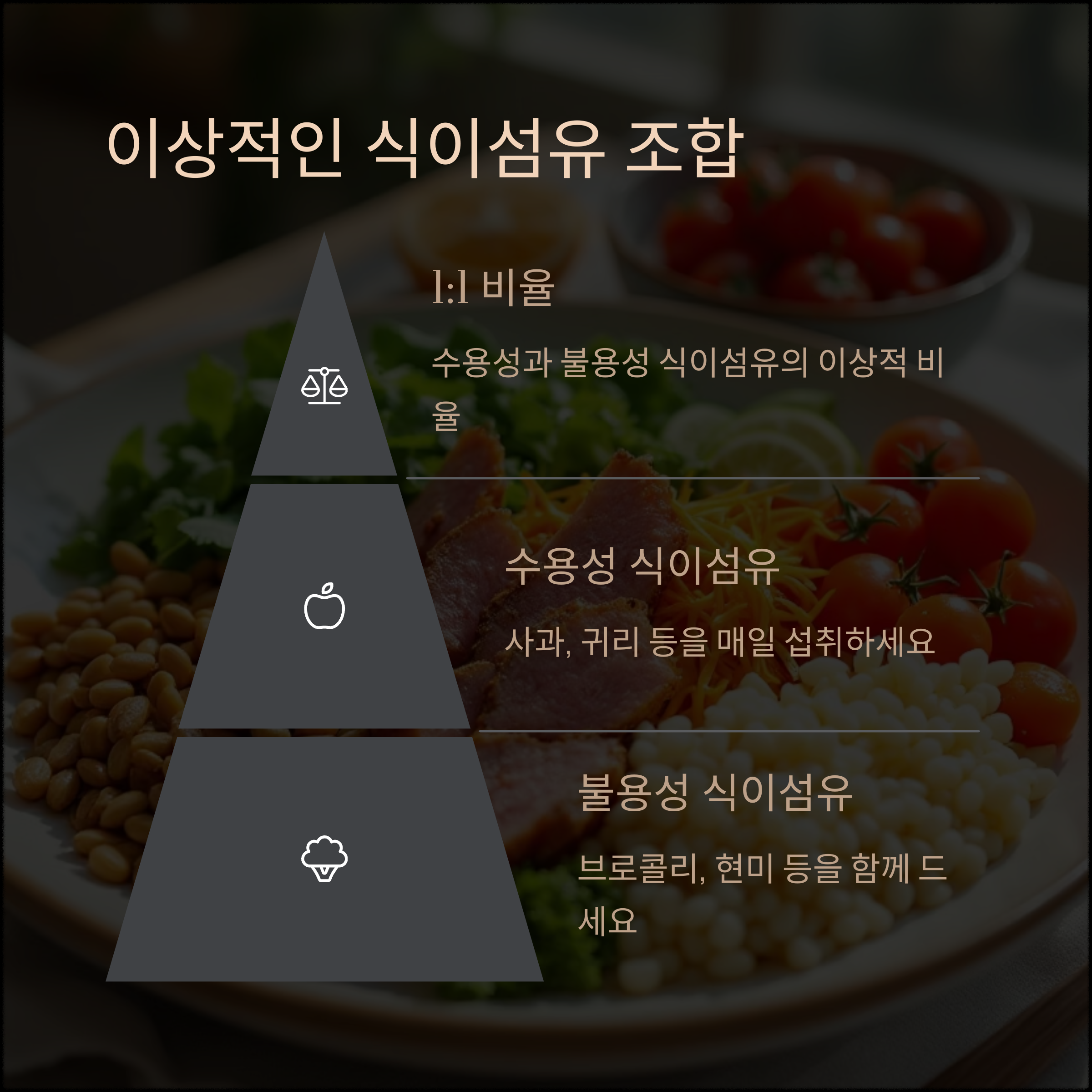 | 식이섬유 조합 | 수용성과 불용성 식이섬유의 균형이 핵심 |