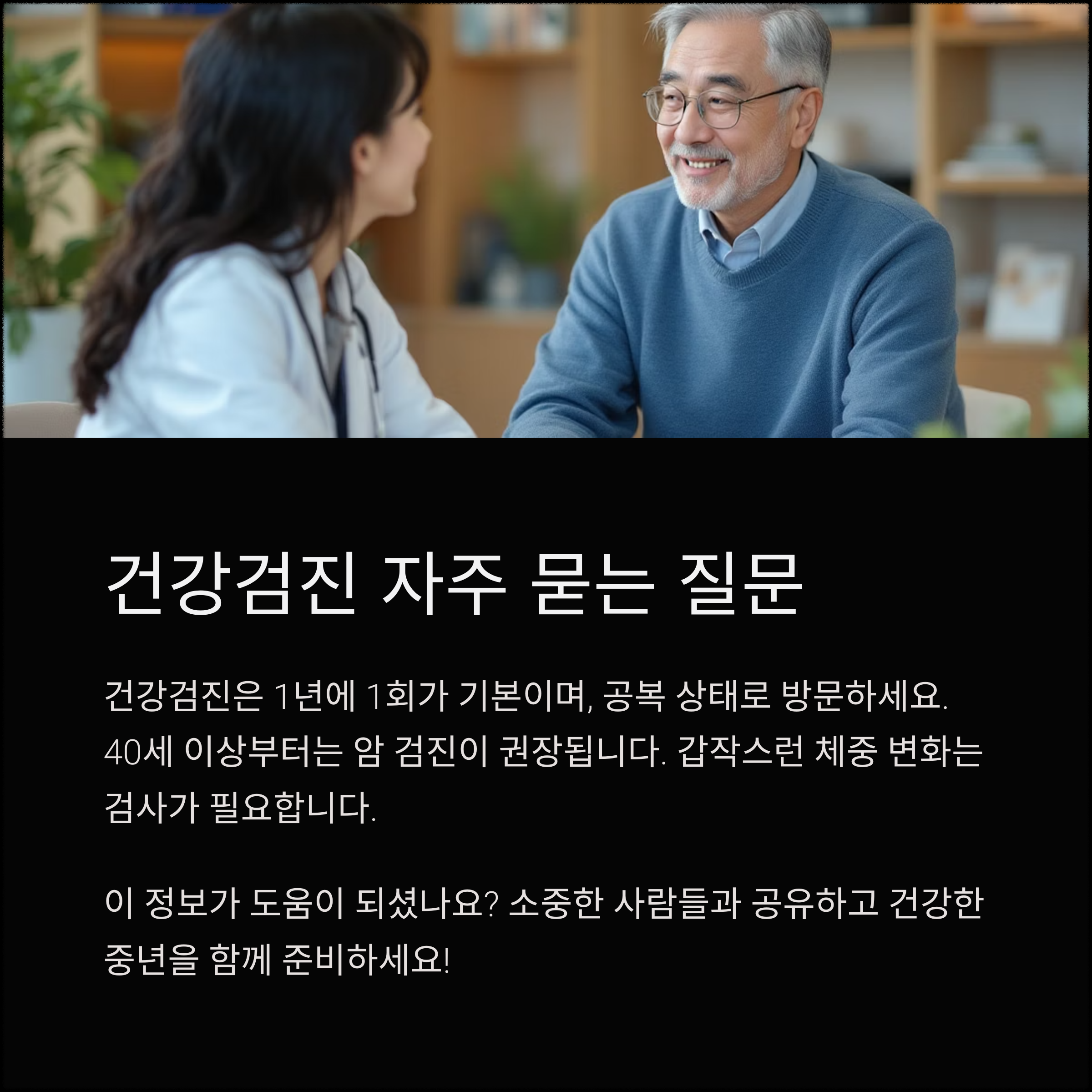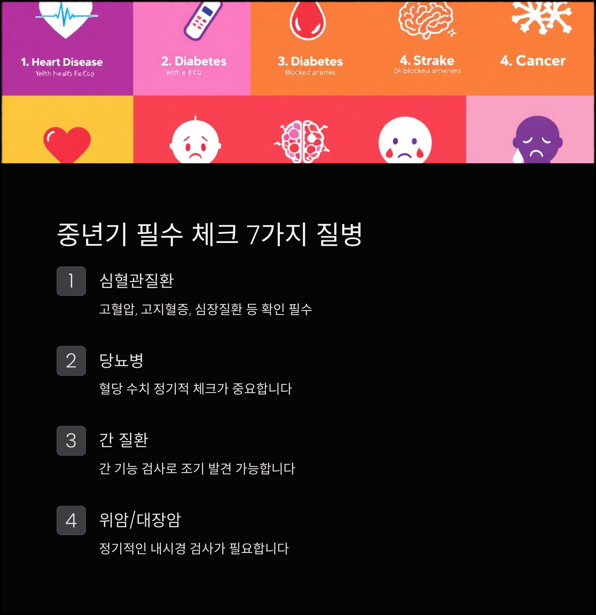 중년 건강검진은 단순한 검사가 아닌, 생명을 지키는 예방의 시작입니다. 지금 당장 스케줄에 검진 일정을 넣어두세요.