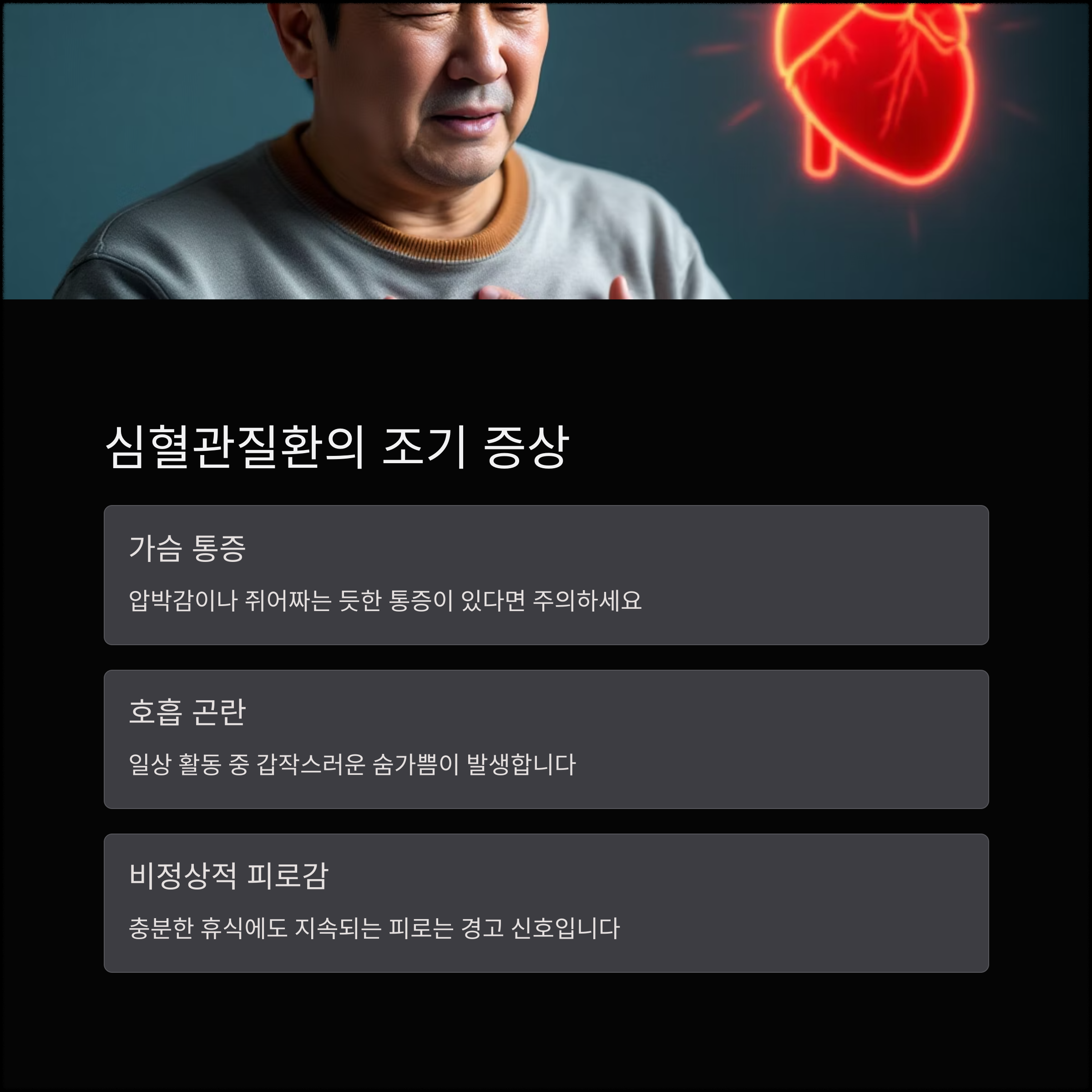 심혈관질환 | 고혈압·고지혈증 조기 진단 | 생활습관 병행 |