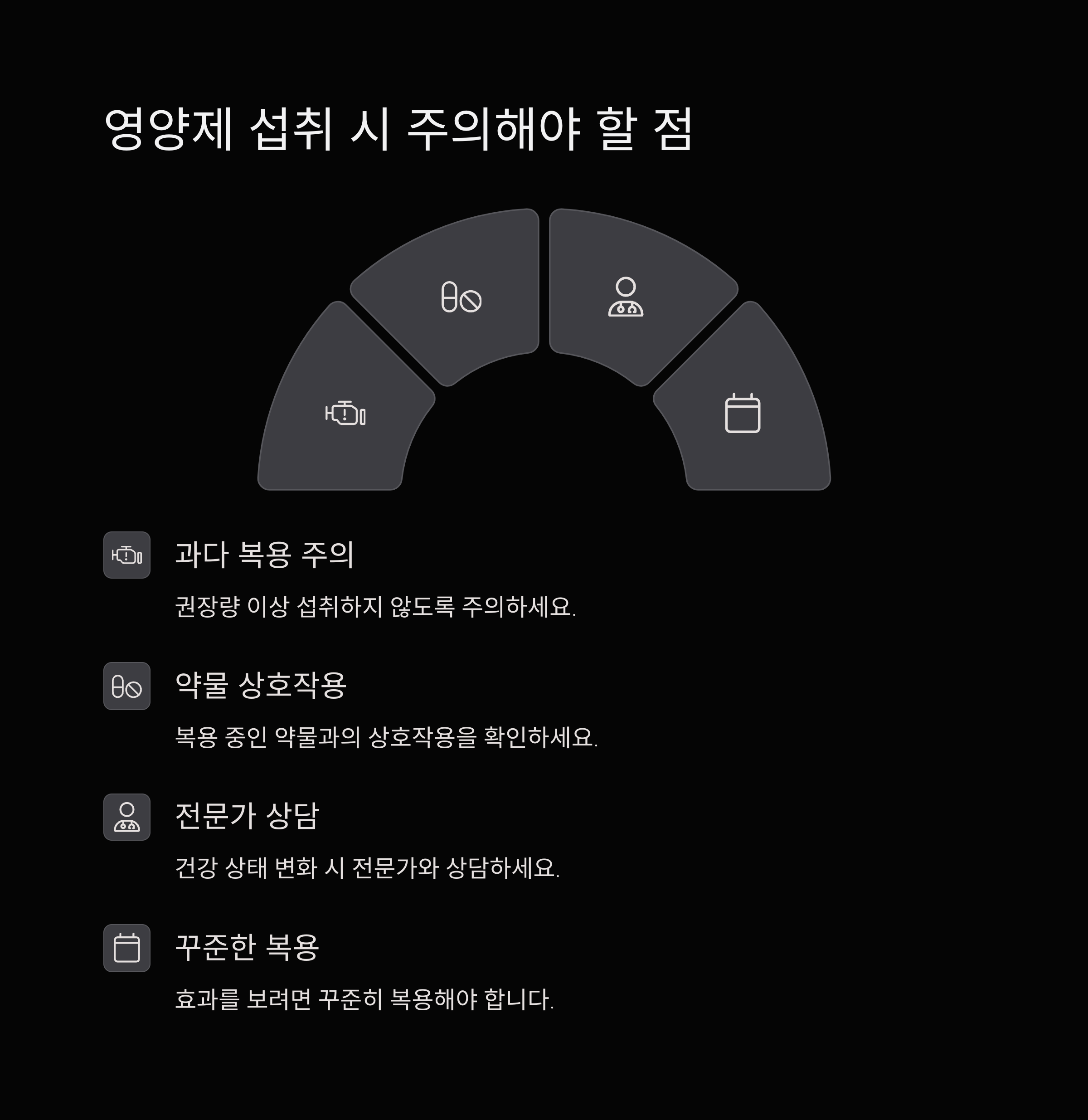 | 필수 영양제 | 복용 방법 | 주의 사항 |