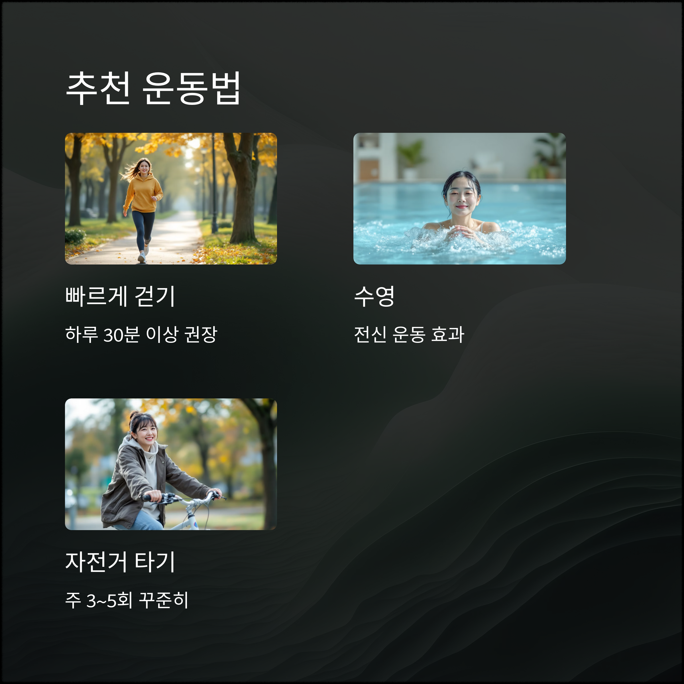 심혈관 질환 예방법 | 규칙적 운동, 균형 잡힌 식사, 스트레스 관리 |