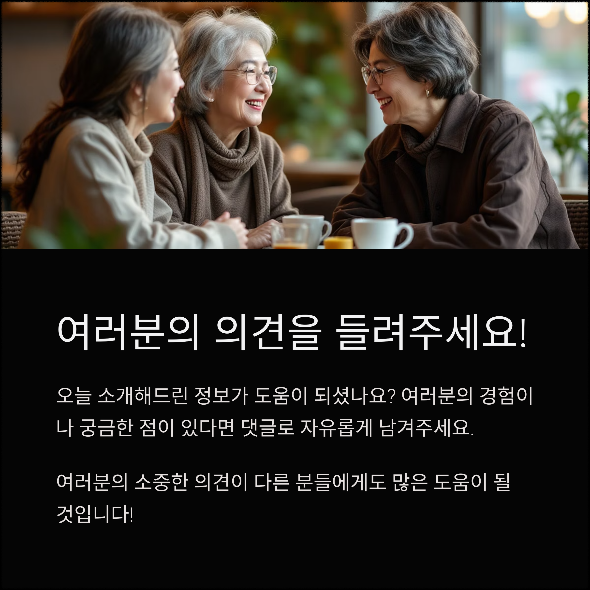 오늘 소개해드린 정보가 도움이 되셨나요? 여러분의 경험이나 궁금한 점이 있다면 댓글로 자유롭게 남겨주세요. 여러분의 소중한 의견이 다른 분들에게도 많은 도움이 될 것입니다!