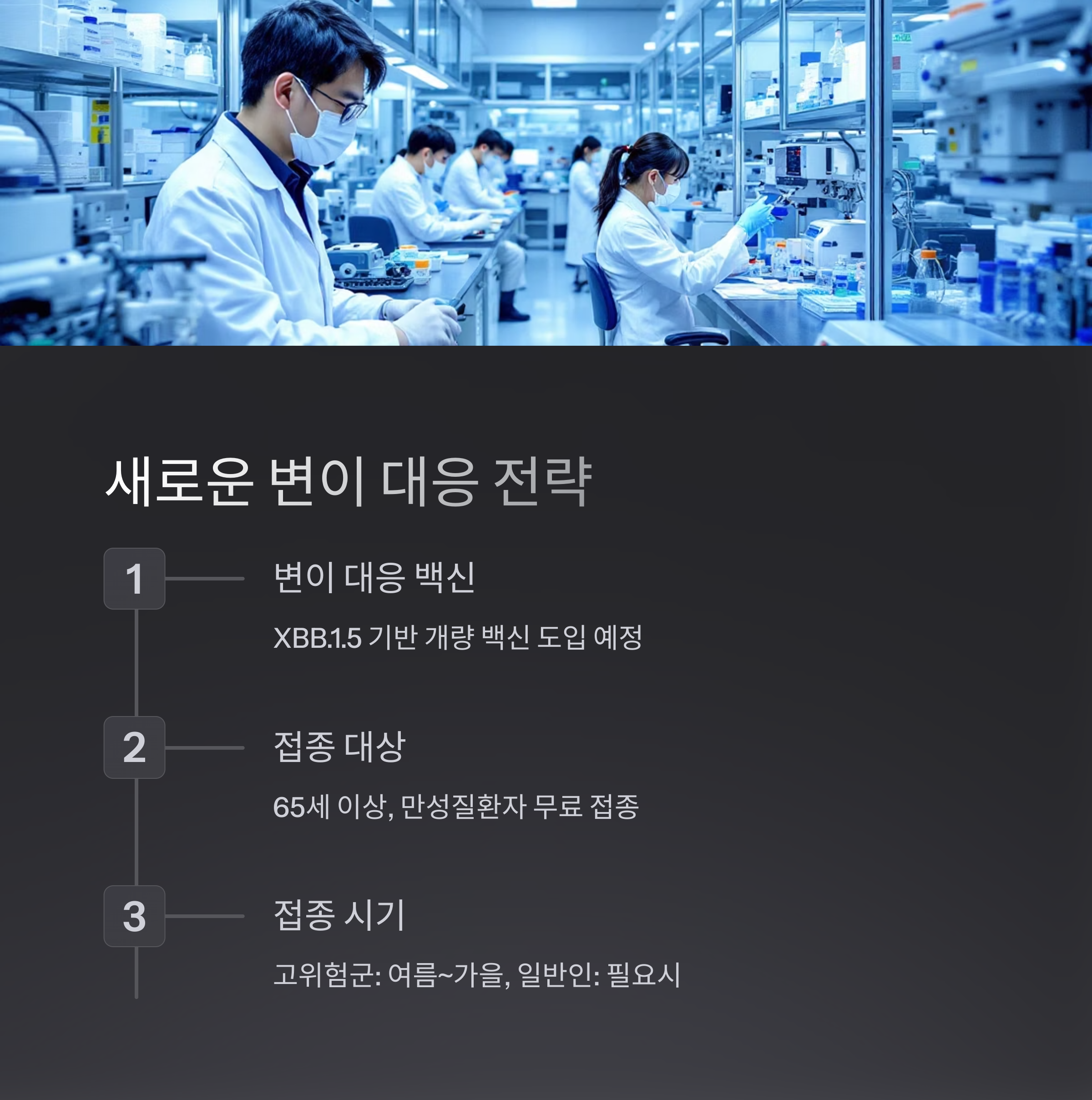 국내외 백신 제조사들은 이러한 변이에 대응하기 위해 새로운 변이 대응 백신을 개발 중입니다. 현재까지 승인된 백신들은 대부분 오미크론 XBB 계열 변이에 맞춰 개량되었습니다.