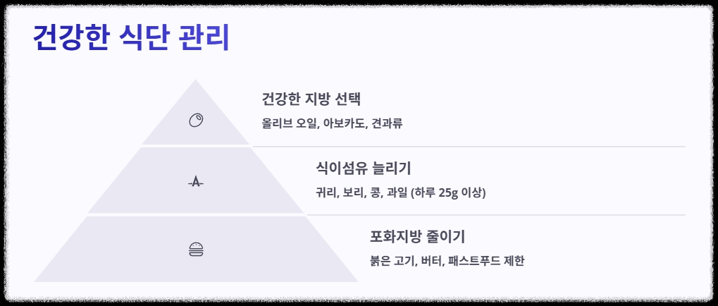 콜레스테롤 낮추는 방법을 식단, 운동, 생활습관으로 자세히 정리했습니다. 지금 당장 실천할 수 있는 건강 관리법까지 소개하니, 콜레스테롤 수치가 걱정된다면 지금 바로 확인하세요.