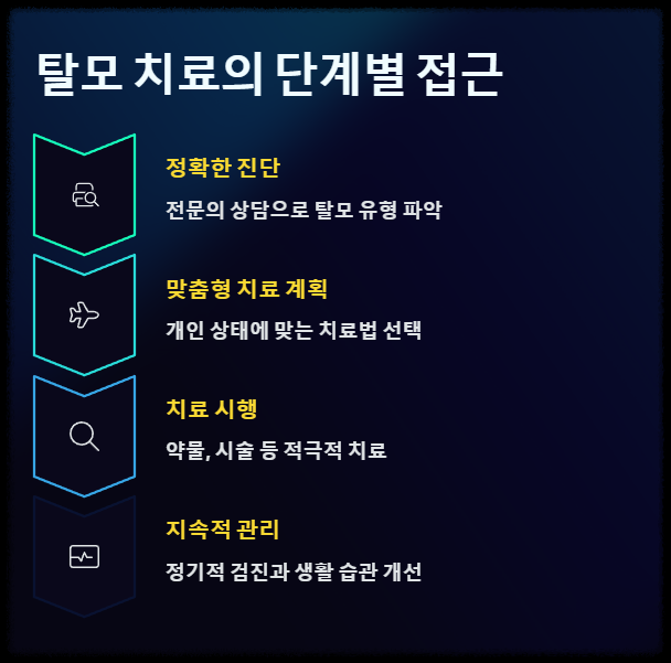 - 정기적인 두피 검진 : 탈모 초기 증상이 나타나면 즉시 병원을 방문하여 정확한 진단과 치료를 받는 것이 중요합니다.