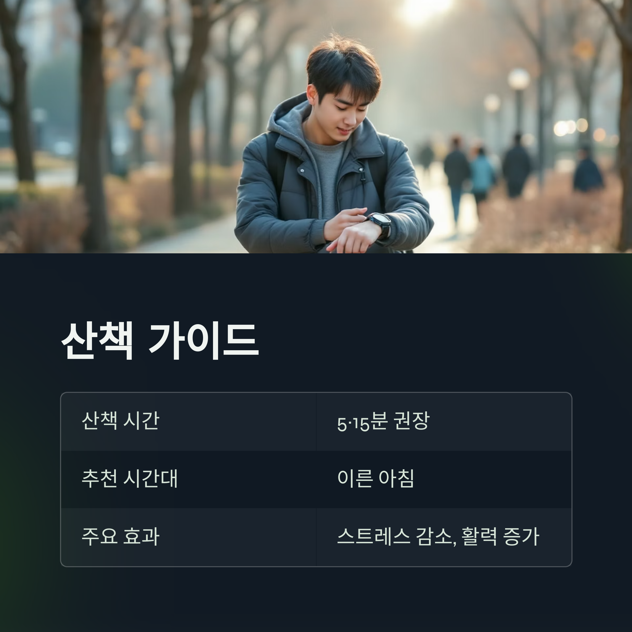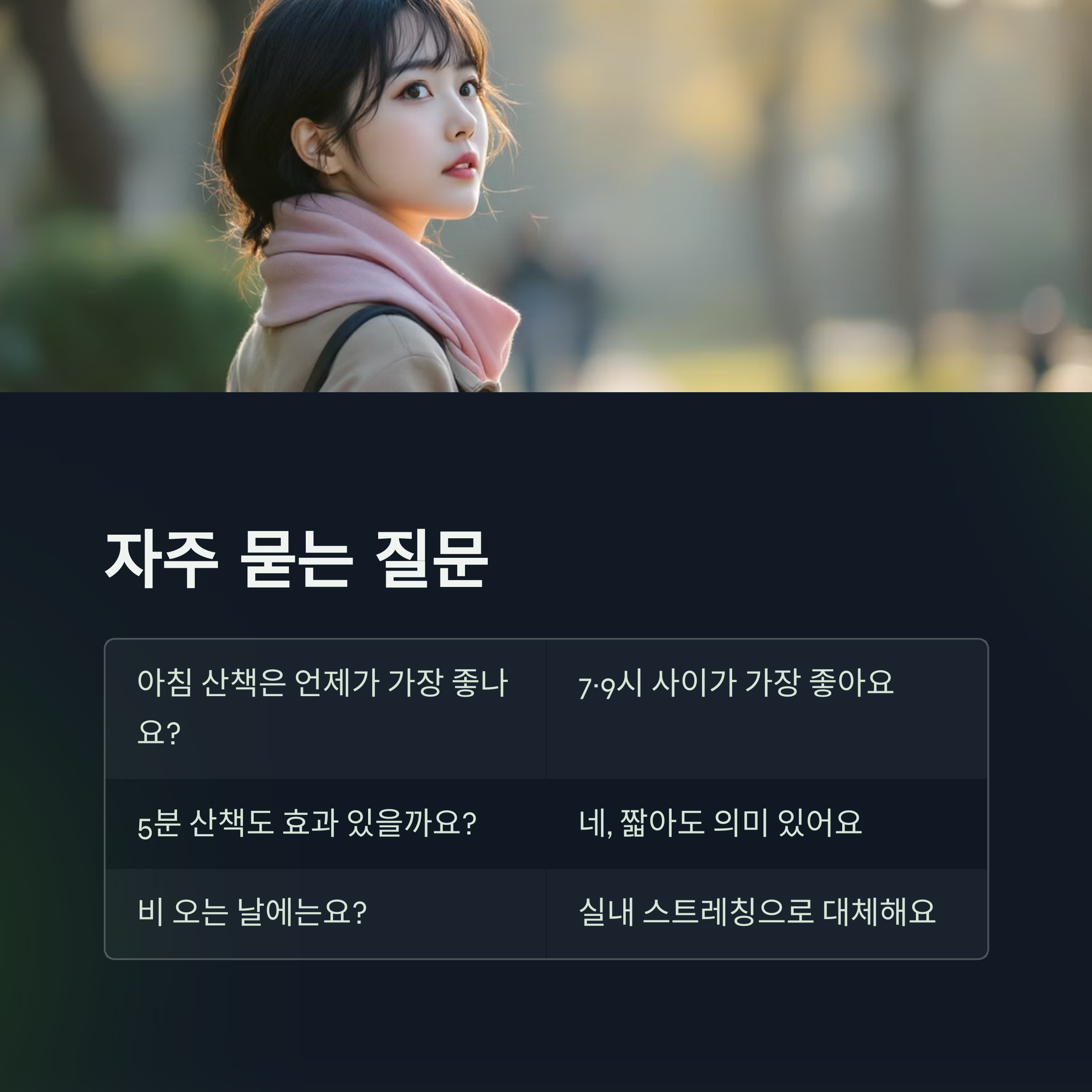 "아침을 여는 짧은 산책은 하루를 다르게 만듭니다."