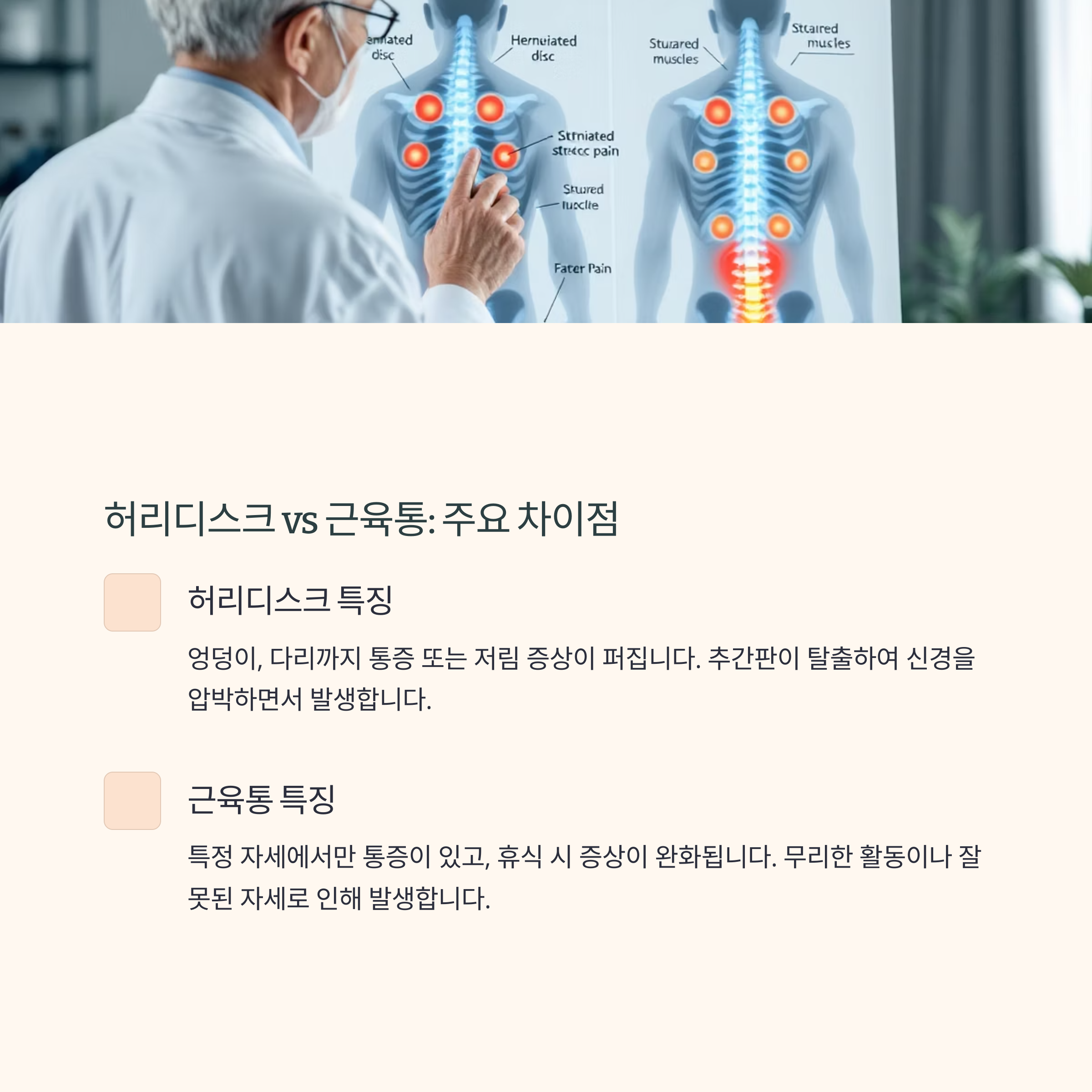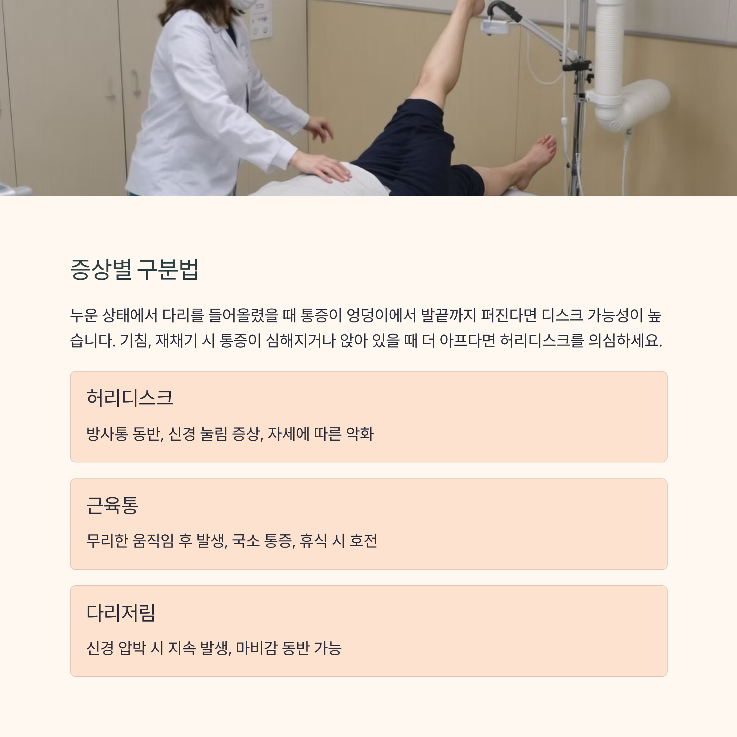 | 허리디스크 | 단순 근육통 | 다리저림 |