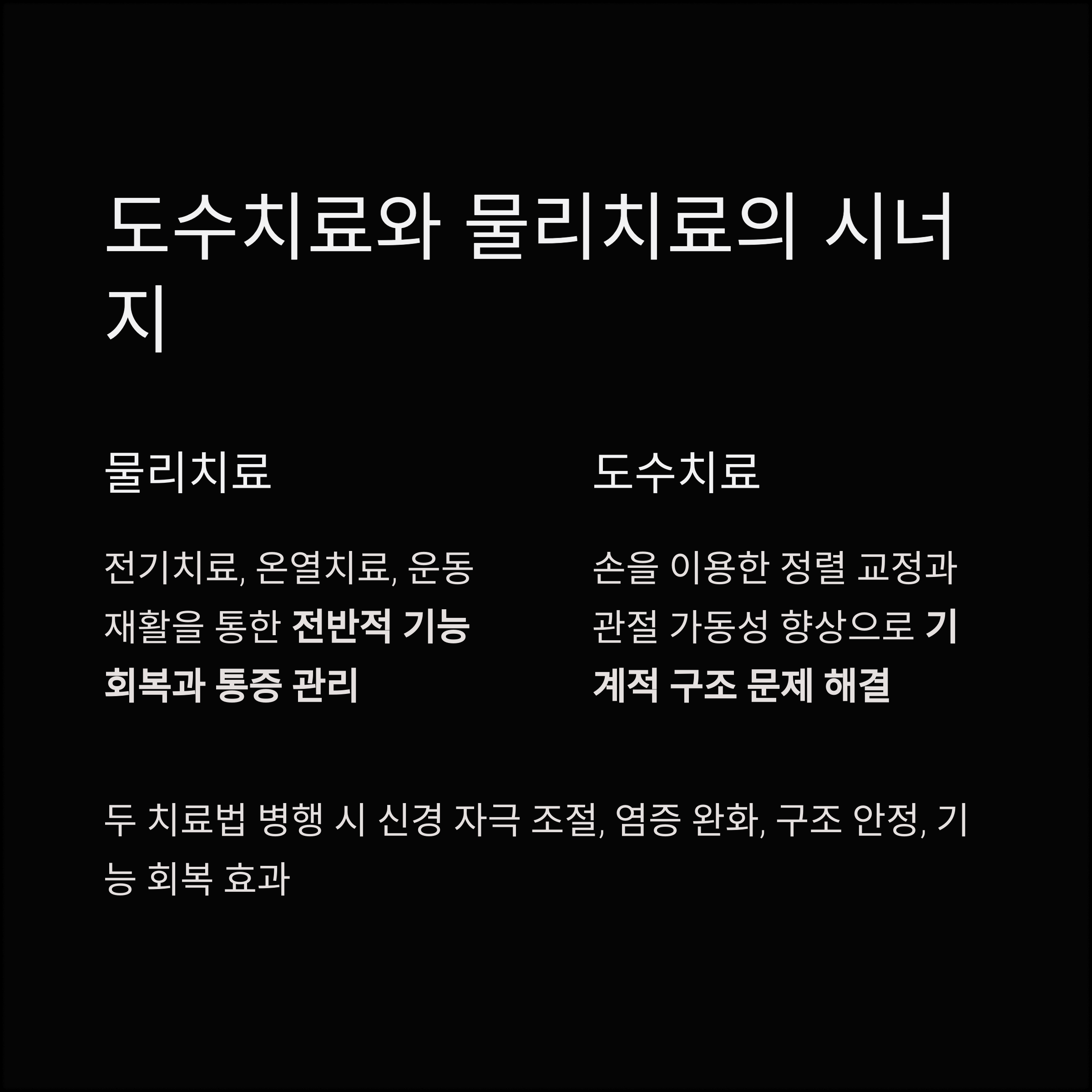 | 냉온요법 | 척추 정렬 교정 | 염증 완화 + 구조 안정 |