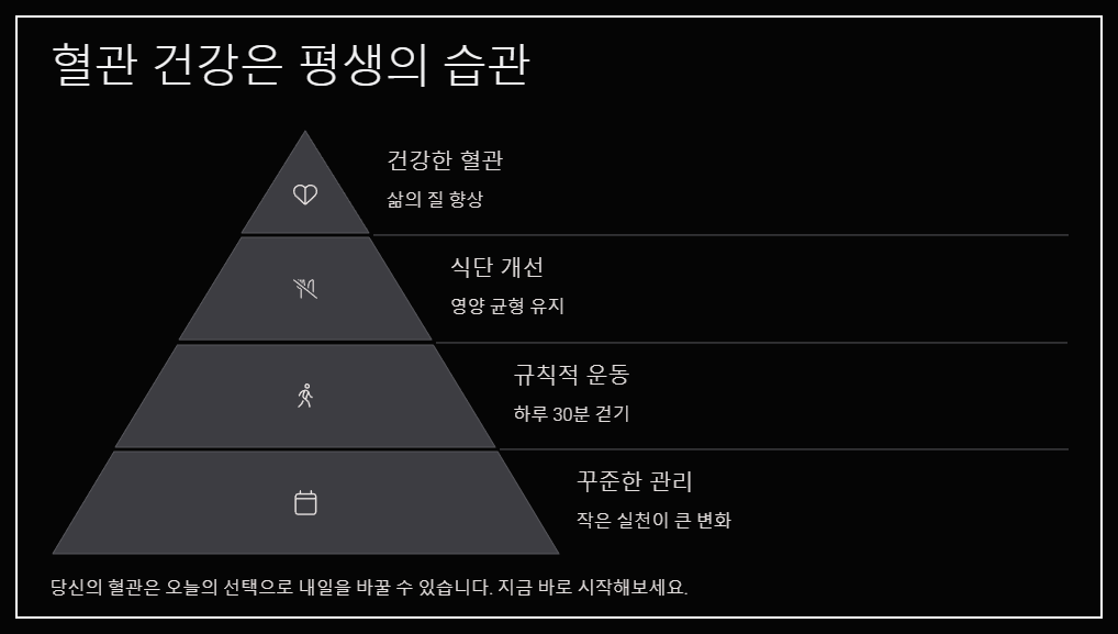 오늘부터 한 가지 생활습관을 바꿔보세요. 작은 변화가 당신의 혈관 건강에 큰 차이를 만듭니다.