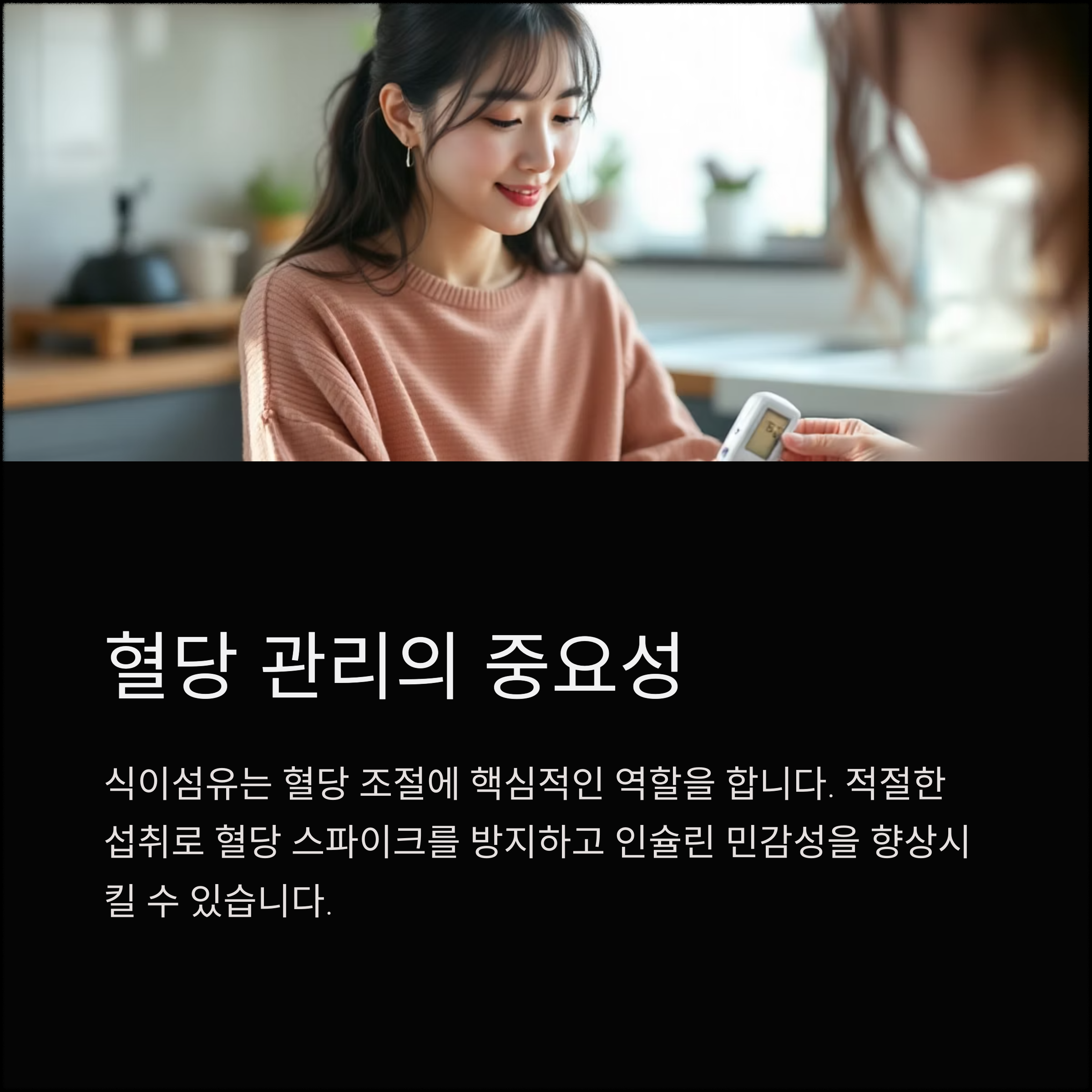 특히 식이섬유는 혈당 조절에 중요한 역할을 하며, 식단에 적절히 포함시키면 혈당 스파이크를 방지하고 인슐린 민감성을 향상시킬 수 있습니다.
